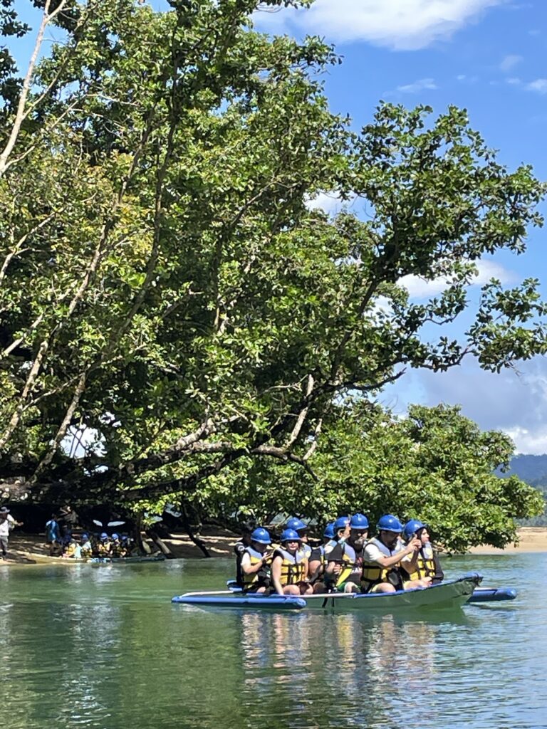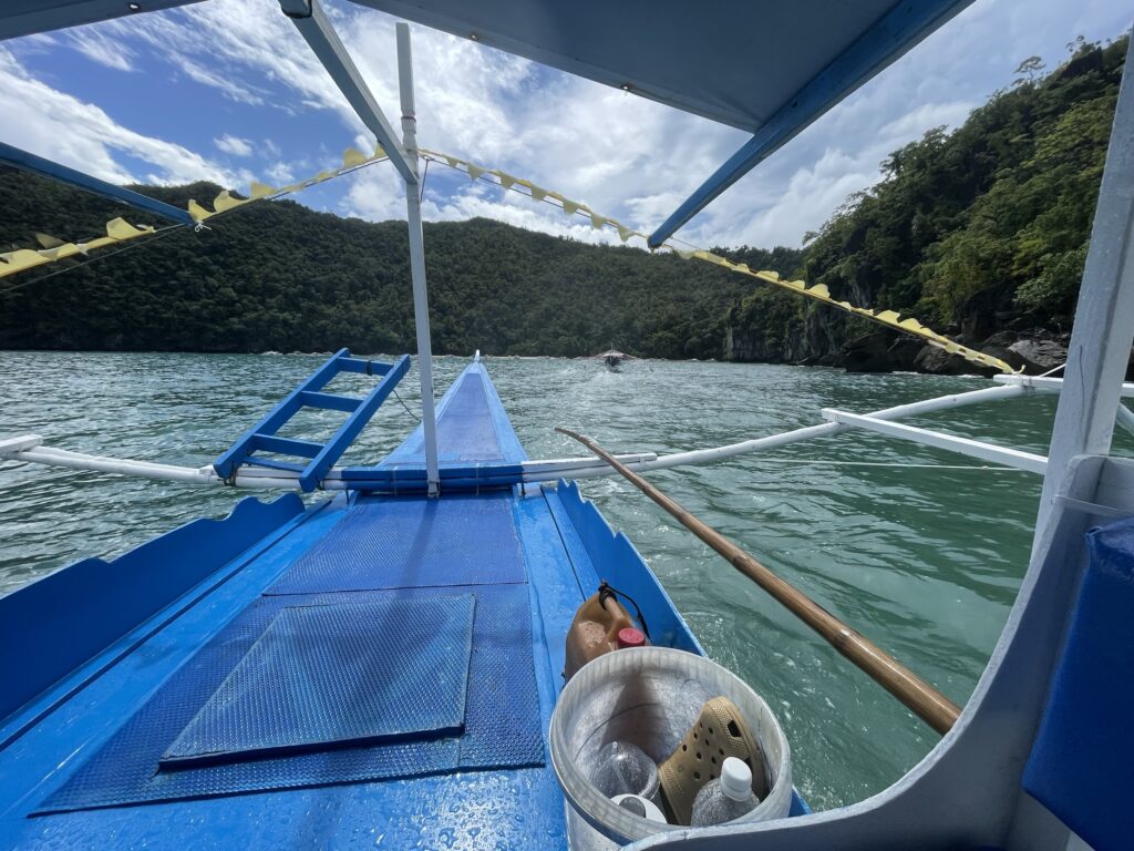 Ovviamente io con il mio cappello da Indiana Jones non ho paura di niente , ma viene purtroppo subito sostituito con un caschetto stile cantiere ( i cicli della vita…) ed ovviamente il giubbotto salvagente di ordinanza. Devo ammettere che in quanto sicurezza sono seri questi filippini.