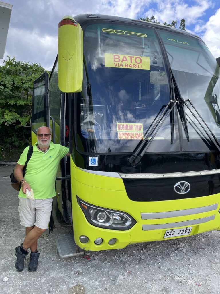 Per cui stamane alle 7.30 salto, unico occidentale, su un bus di linea preso al Terminal Sud che mi porta a Moalboal nella costa sud ovest dell isola di Cebu, in 4 ore e per 3,5 euro.