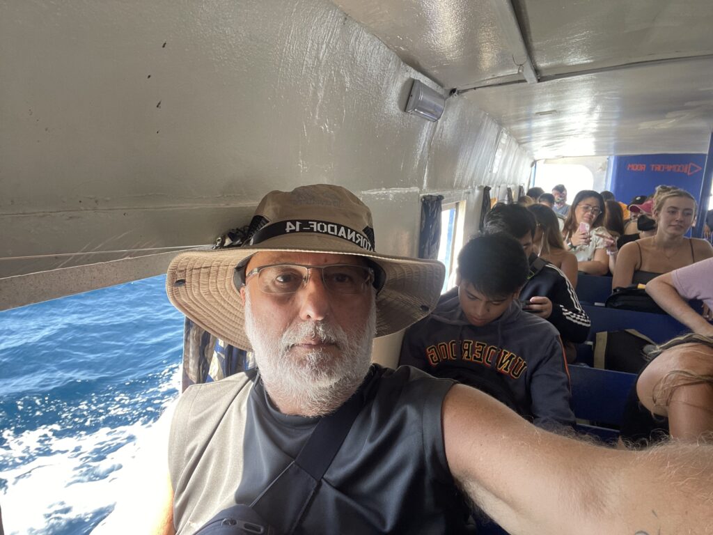 Detto fatto, impacco tutto, ed in strada , senza aspettare il bus , salto su una moto, zaino e trolley compresi (!) e con 1,5 euro in 20 min sono al porticciolo di imbarco.
