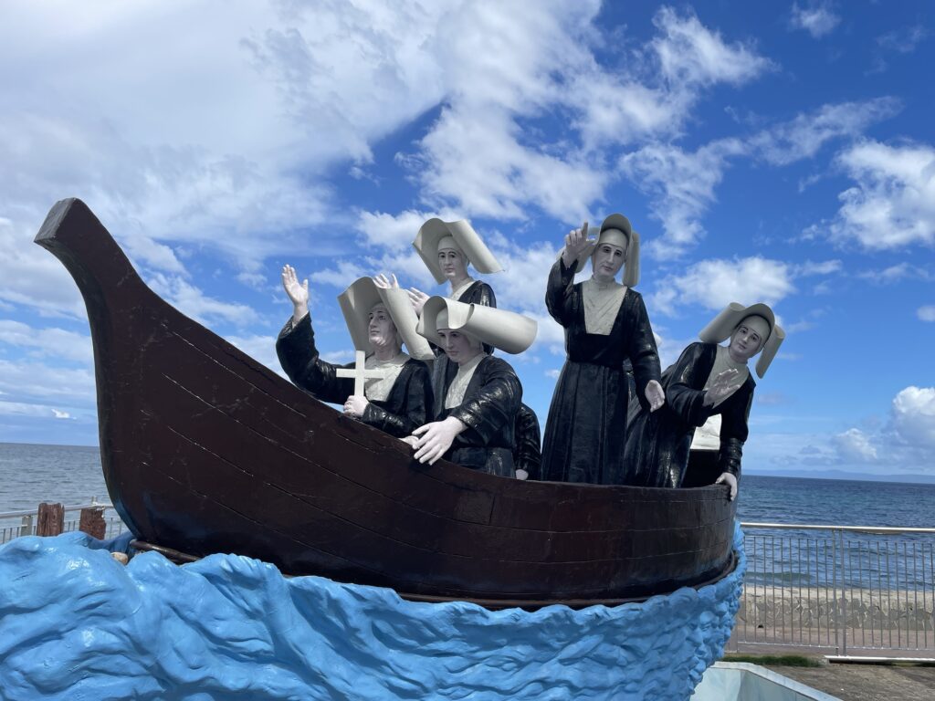 Giro un po’ a piedi , bel sole, poco traffico ed un lungomare con palme ed un monumento alle suore missionarie, kitsch ma simpatico, e sullo sfondo Siquijor, L isola magica dov’è andrò domani .