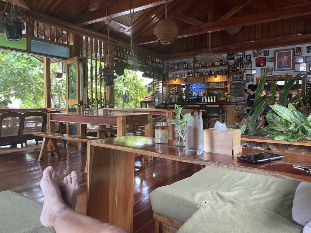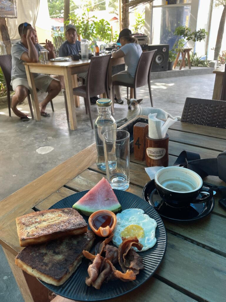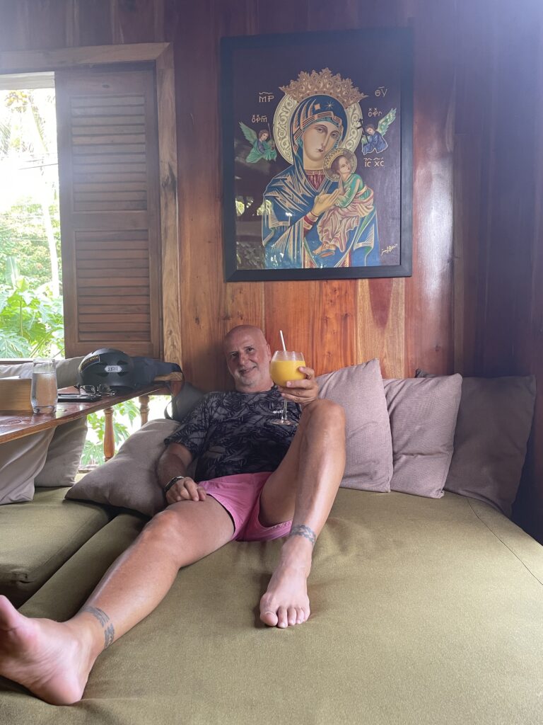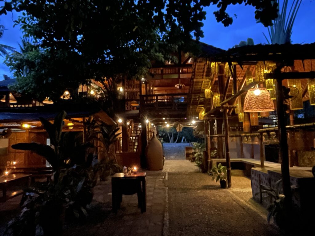 Baha Bar, ci si entra solo scalzi, nel fascinoso e tropicale bar/ ristorante a due piani tutto in legno, anzi 4 bei tipi di legno, tutti nativi dell isola. Candele, Cibo ottimo, cocktail strepitosi, musica soft dal vivo, atmosfera rilassante , divanetti comodi, cameriere gentili. Davvero non c’è bisogno di altro, forse un sigaro , ma non me lo posso più permettere e comunque qui non si fuma! L ho promosso a mio bar preferito qui a Siquijor, ci vengo spesso per uno mango shake o a cena. C’è la classifica annuale dei bevitori di cocktail per nazione, Italia non classificata…