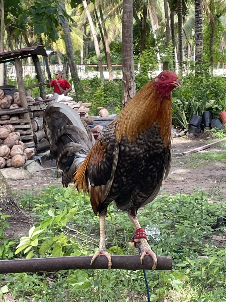 Il difetto della mia nuova Villa (basta stanzette francescane per un po’ 😜) lo scopro la mattina dopo, prima dell Alba. Dietro casa c’è un allevamento con decine di Galli da combattimento…