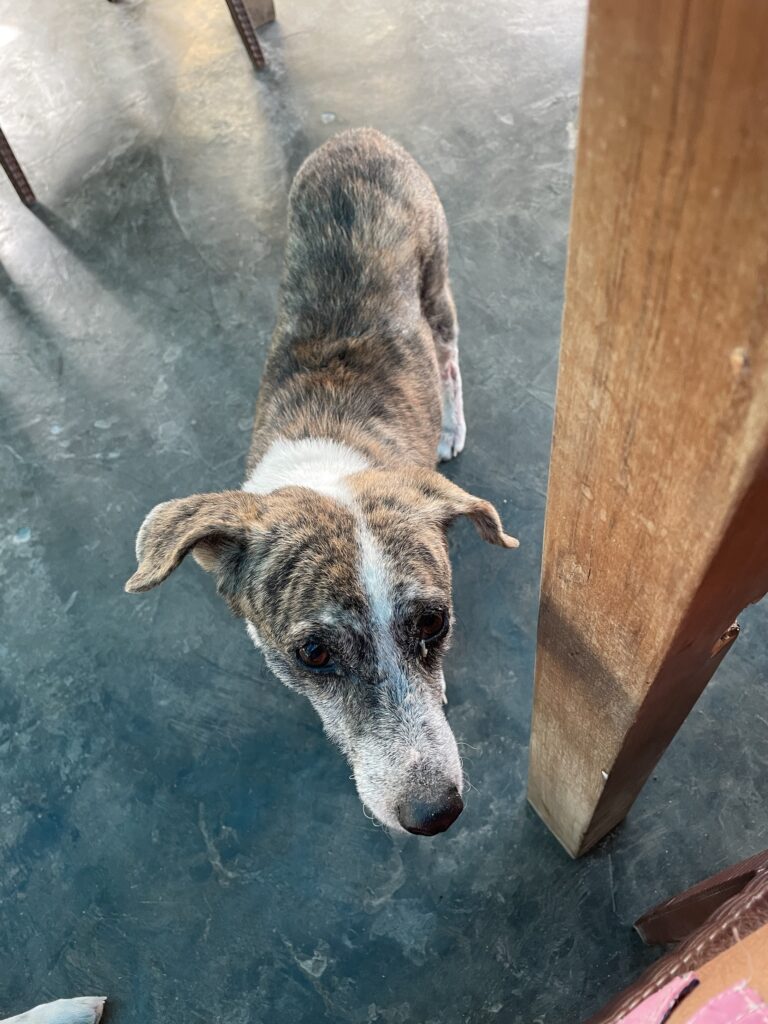 Colazioni ottime, con i teneri cagnetti randagi ( qui sono ubiqui, tanti e tranquilli) che ti guardano supplichevoli di qualche avanzo. Altro che il mio Paco, che causa una pseudo artrosi da vecchiaia si è guadagnato una cuccia nuova di zecca (!) 🤪 morbida e molleggiata.