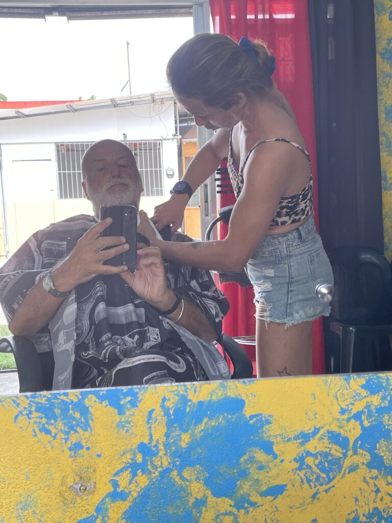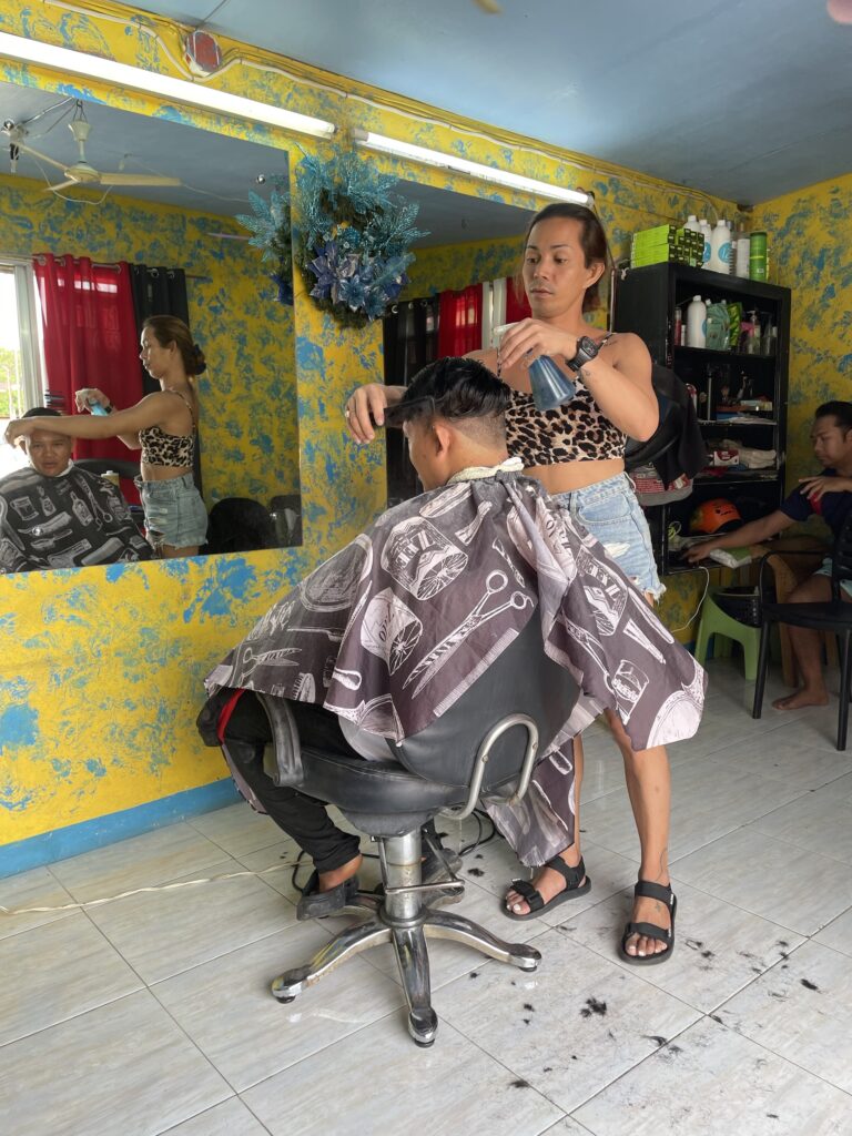 Una sosta nell unico barbiere, un po’ gay/trans, per una accorciata e regolata alla mia barba bianca che mi fa sembrare troppo Babbo Natale , molto trendy in questo periodo, ma un po’ fastidiosa con il caldo (costo 1 euro, mai avuto un taglio barba così perfetto e curato in vita mia!) Si vedono parecchi trans in giro per le Filippine, un inglese mi ha detto che è dovuto al fatto che tutti mangiano molto pollo allevato con estrogeni, mah!