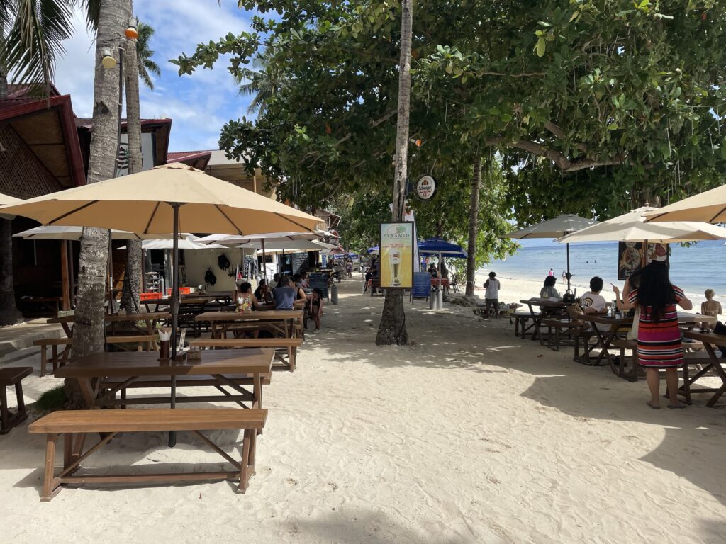 Comunque, sotto un caldo umido atroce alla fine decido di fermarmi nel primo visitato qui nei dintorni. Che è il meno peggio, comunque comodo e pulito. Qui è tutto diverso, densità, prezzi, qualità. Averlo saputo sarei rimasto un giorno in più a Siquijor ed uno di meno qui, ma oramai….Turisti molti, soprattutto ricchi coreani, ma non solo, prezzi più alti, un labirinto di bar e baretti, resort, tattoo, massaggi, diving centers, agenzie turistiche, negozietti e ristoranti di tutti i generi . La spiaggia c’è ma ci sono molte barche ed una selva di venditori.