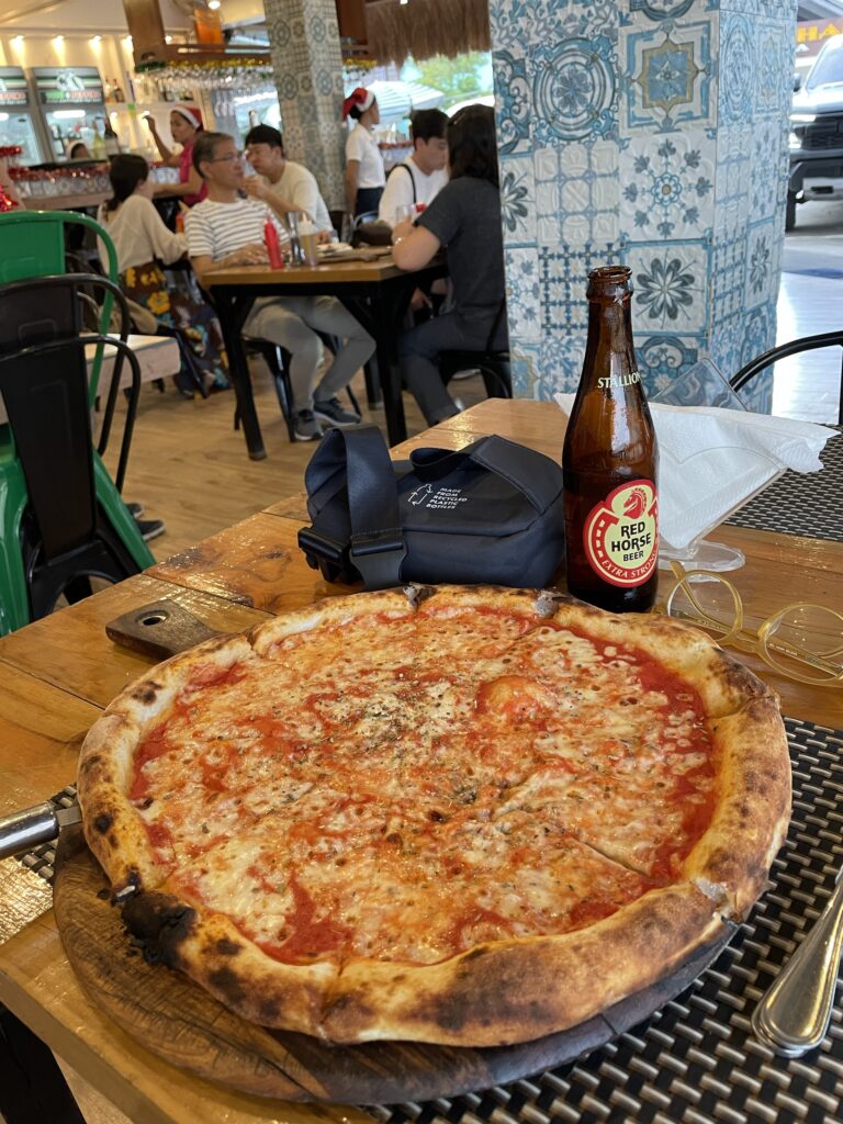 Alla fine, dopo un acquazzone fortissimo che però ha leggermente rinfrescato la cappa di umidità precedente, opto per una pizza con forno a legna da Toto&Peppino. E ‘ sempre così, quando uno ha il morale basso ricerca sicurezza e cose familiari. Pizza comunque buona. Mi rifugio in camera , parecchio stanco le alzatacce degli ultimi giorni causa Pappalardo e gli spostamenti cominciano a farsi sentire.