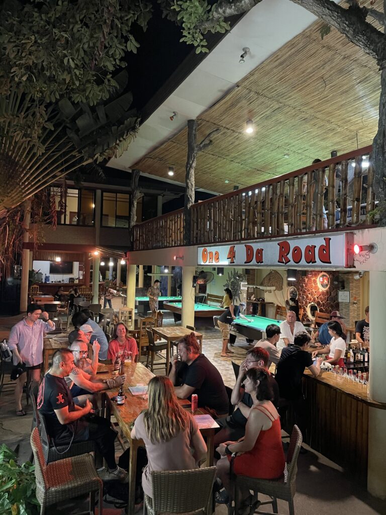 Non ci sono ritrovi post cena , almeno io non li ho visti, forse fuori muovendosi con trike o motorini. C’è solo il mio bar con i biliardi, ma non mi va di stare con inglesi ,tedeschi od americani , che bevono birra non a bottiglie, ma a secchi…