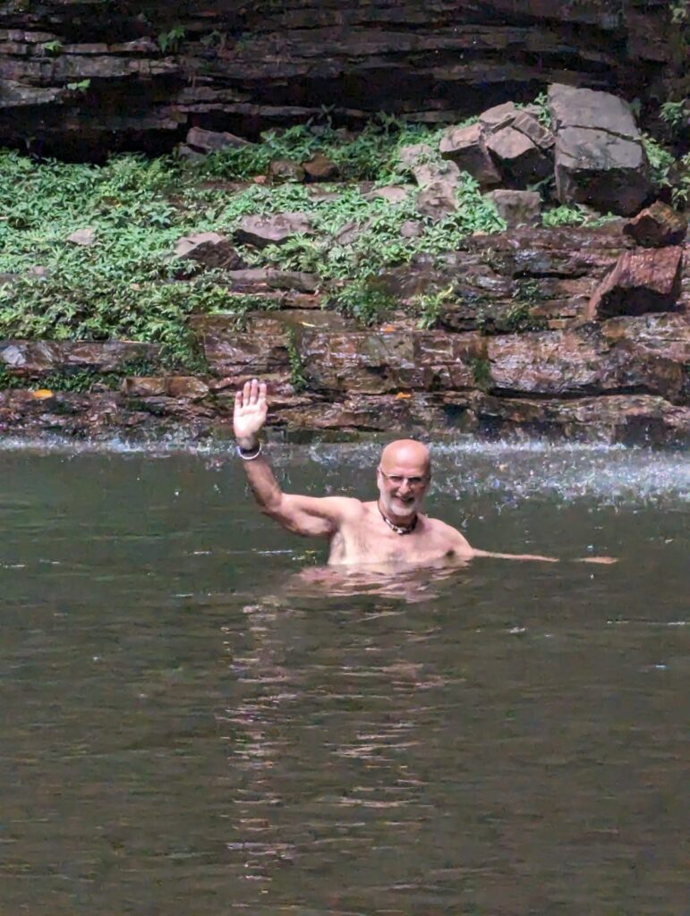 Ma il caldo ed il sudore obbligano al tuffo a quasi tutto il gruppo, guida compresa.
