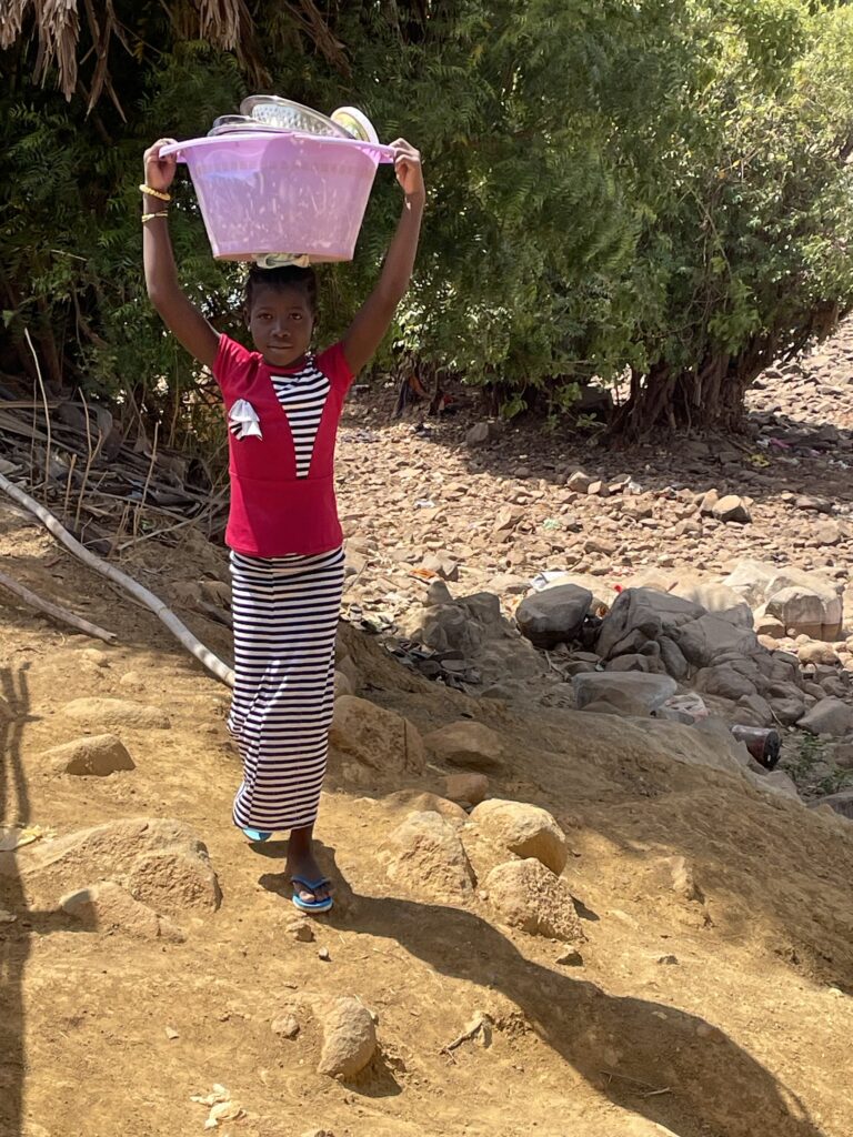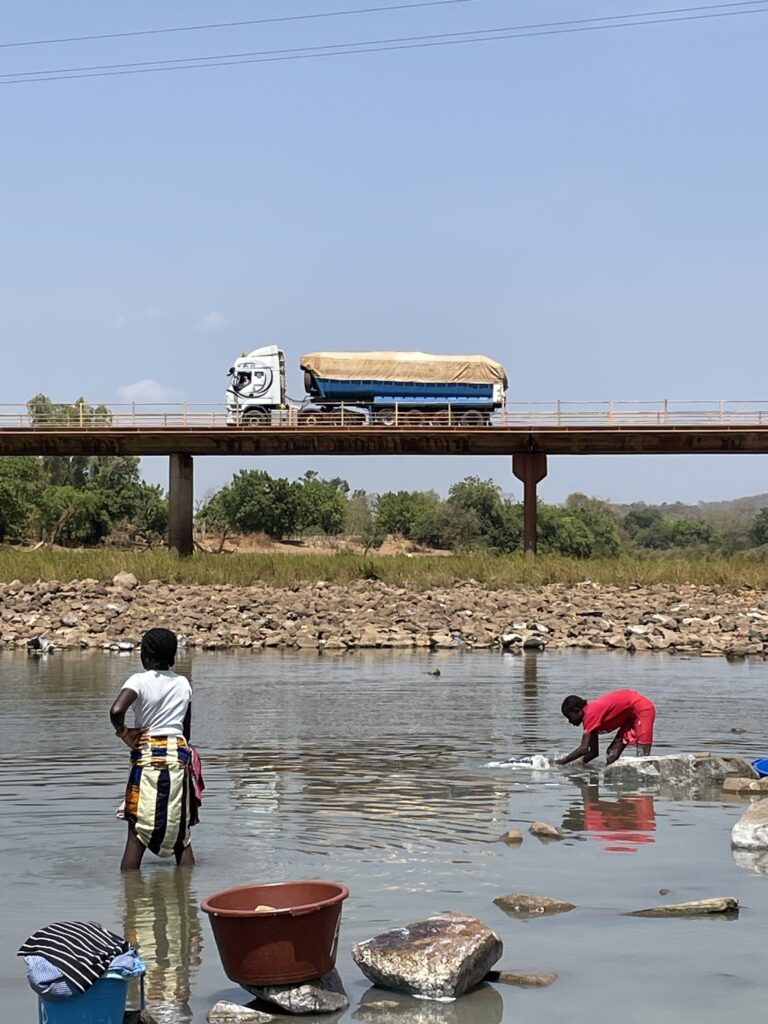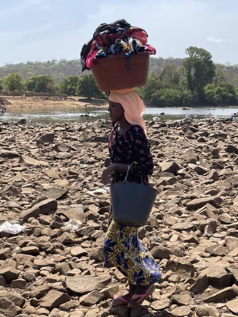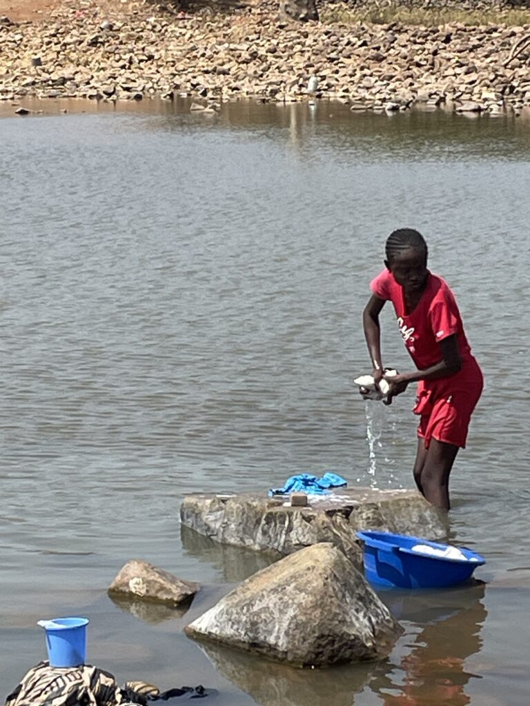 Ci fermiamo a Mako, sotto il ponte sul fiume ci sono le donne che lavano a mano, altro che programmi di lavatrici, sbattono i panni sulle pietre. Fanno chilometri per raggiungere la poca acqua che c’è con le ceste dei panni in testa. Probabilmente è il motivo del perché le donne hanno il passo ed il portamento regale, naturalmente altezzoso: fin da bambine mantengono la schiena dritta portando grossi pesi in testa.