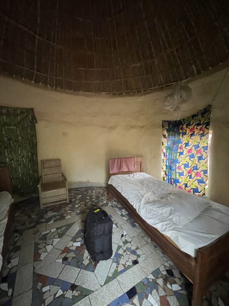 Dopo sosta pranzo a Kedougou proseguiamo per Bandafassi, da Chez Leontine, sistemazione abbastanza basica in bungalow con tetto di paglia vicino un villaggio di etnia Bendik , gestiti dall signora Leontine , che si rivelerà un ottima cuoca, specialmente per la cipolla stufata e per la carne.
