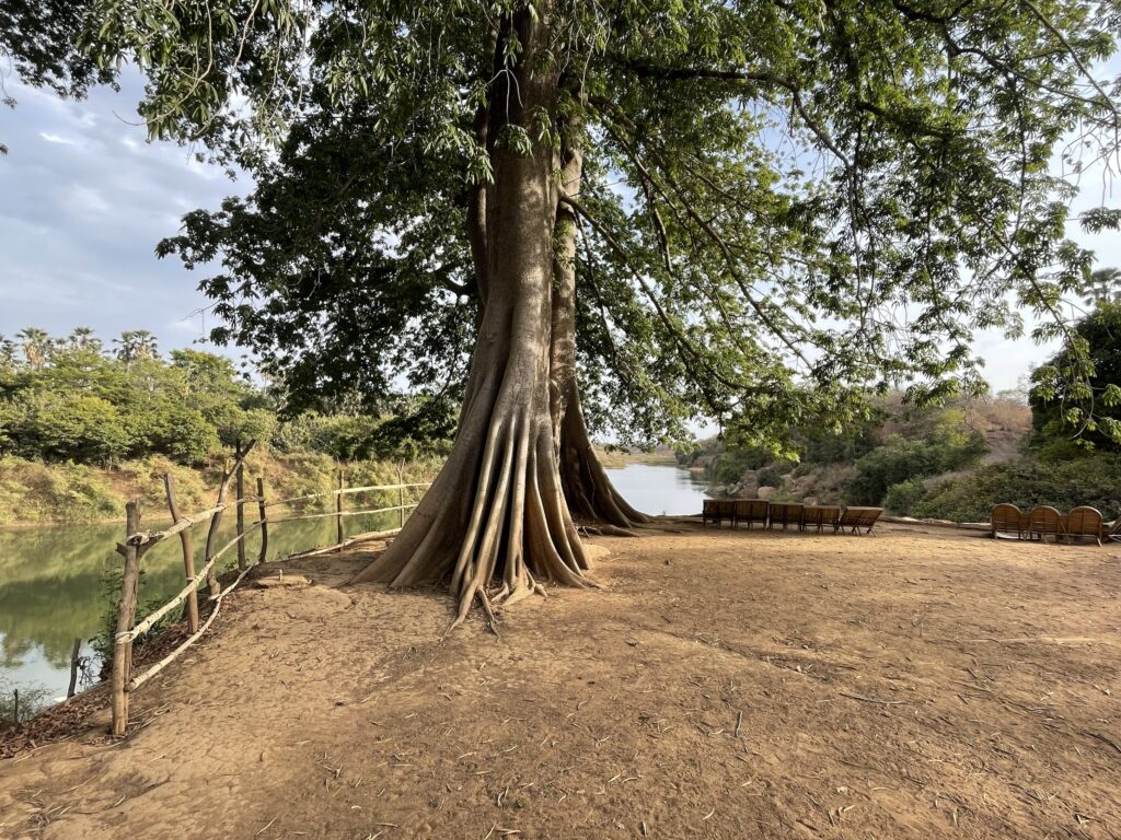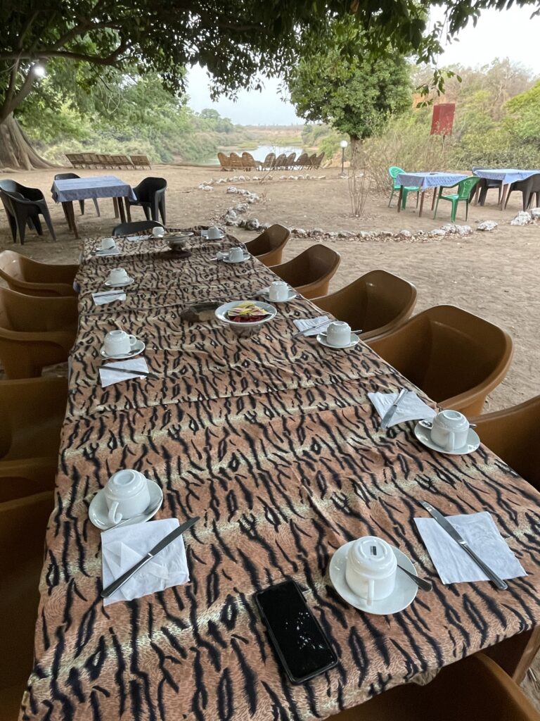La cena e la colazione la si fa sotto un albero, discutendo con il gestore se hai tre vegetariani del gruppo spettano le frittate o no, prima non ci sono uova e poi, minacciando ritorsioni economiche, magicamente compaiono…