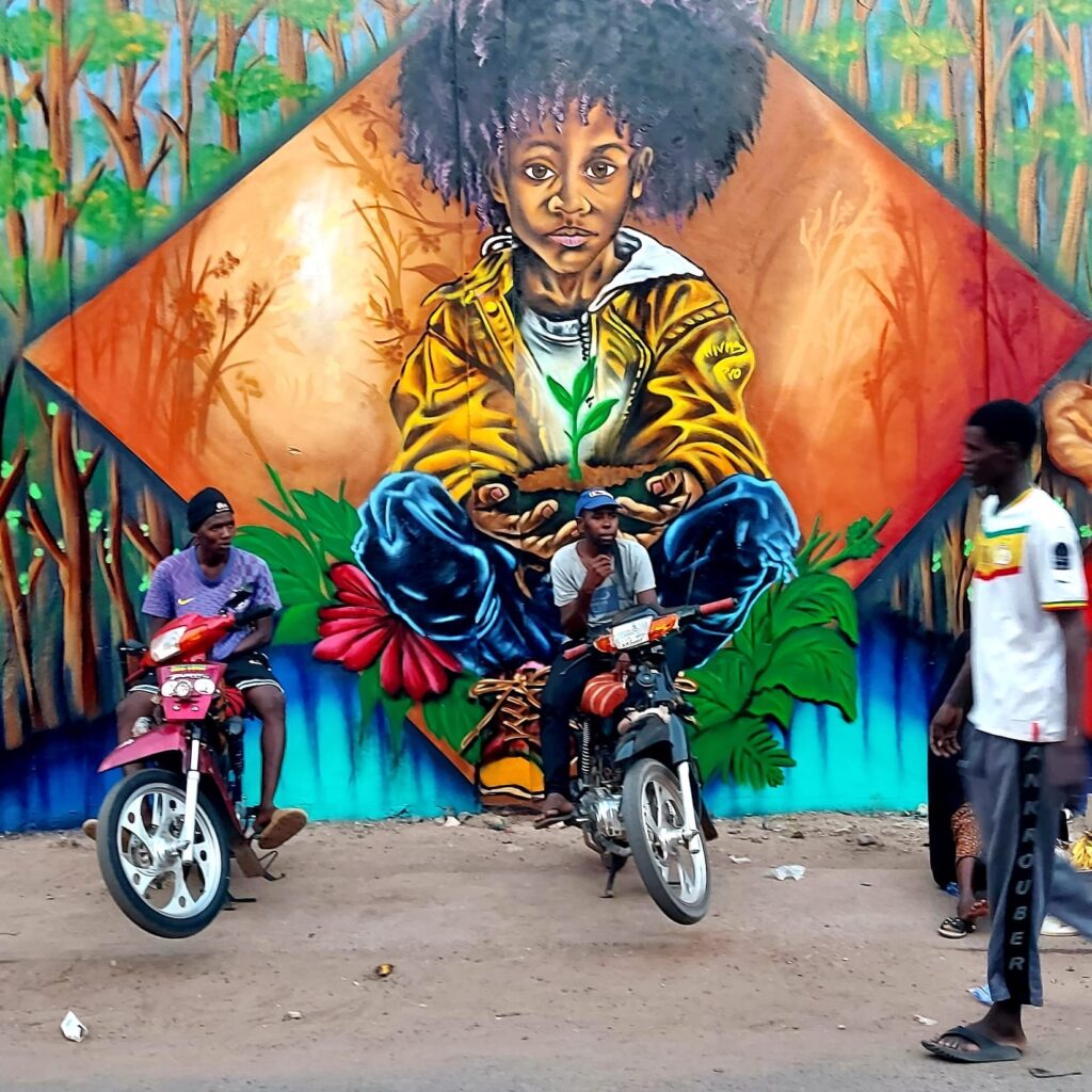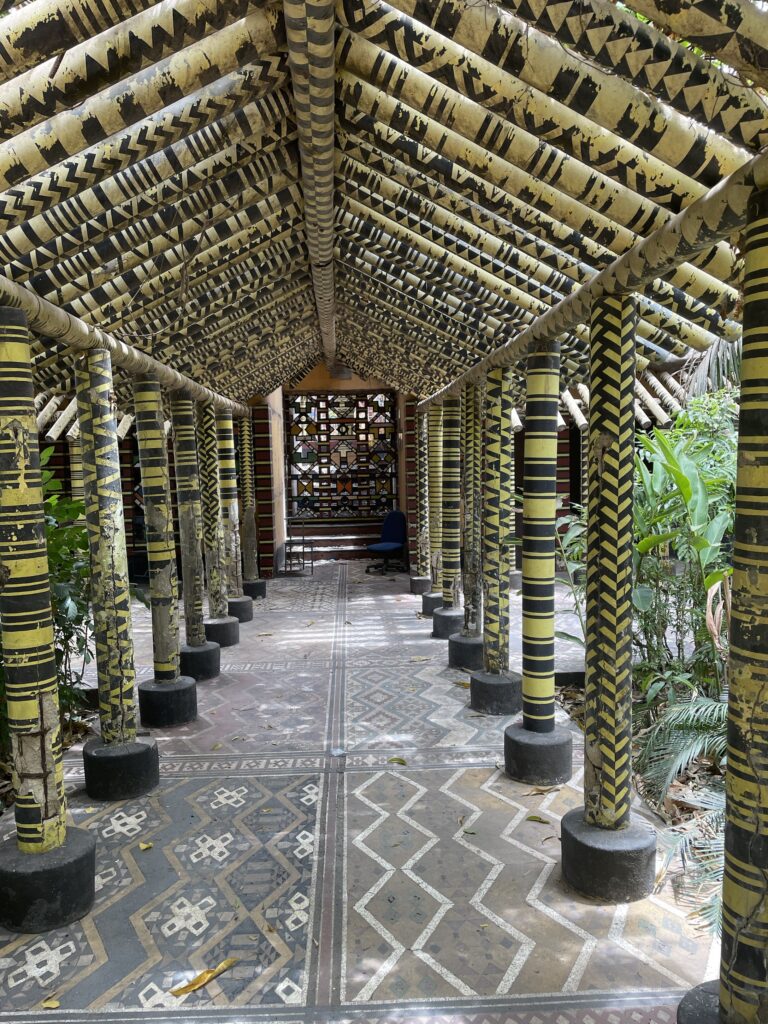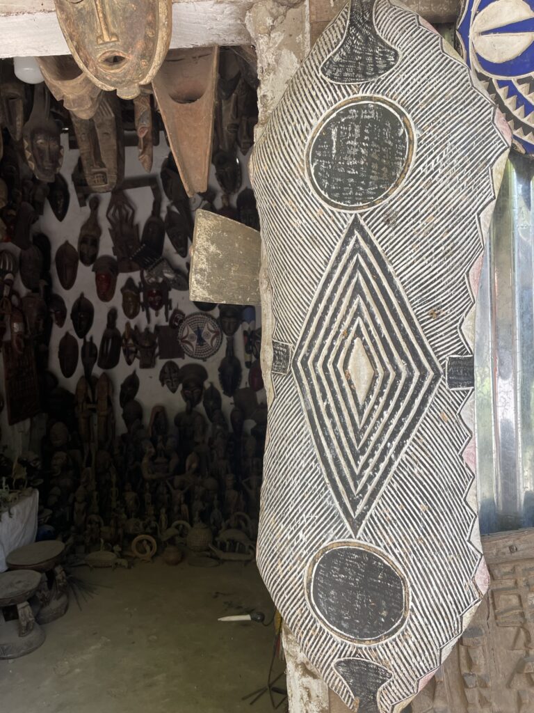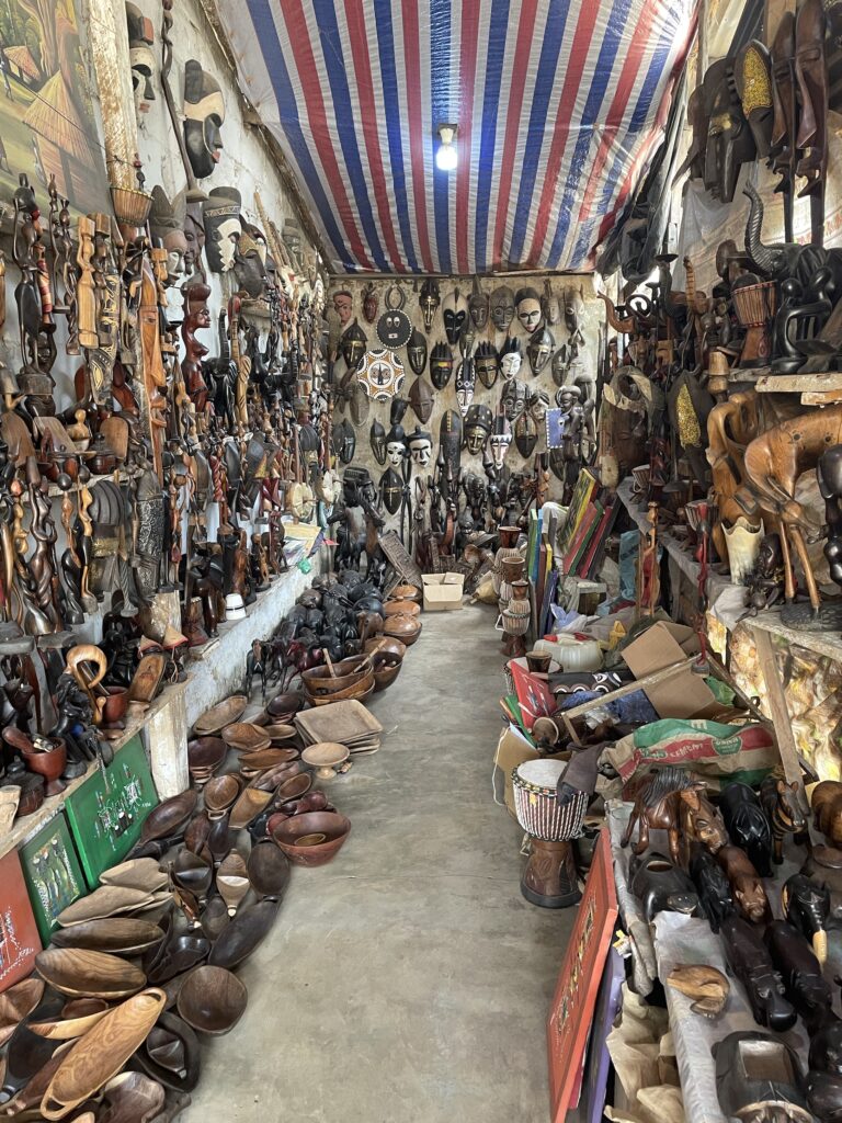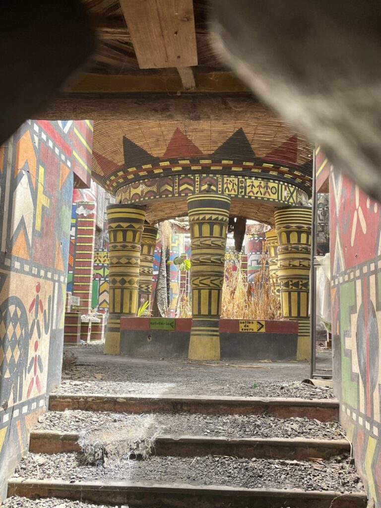 All’ Alleance Franco-Senegalese , un centro culturale di arte africana con casa ad impluvio non ci potremmo entrare. Chiuso perché recentemente incendiato dopo una manifestazione. Ma con 2000 franchi corrompiamo il custode ed entriamo. Bello, fascinoso e decadente…
