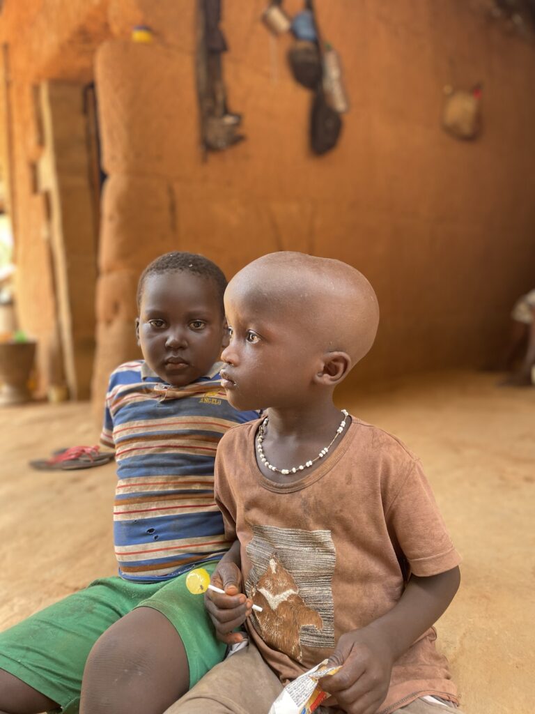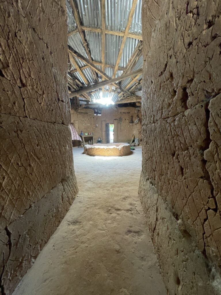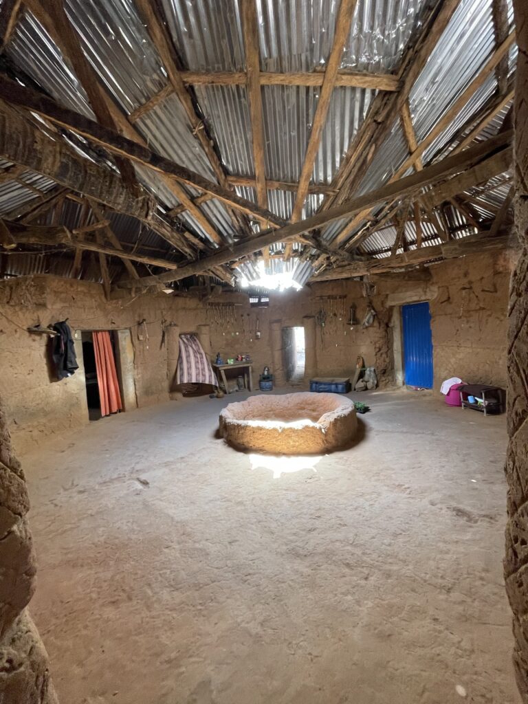 Sosta per visita ad una casa ad impluvio, una capanna circolare di fango in uno dei tanti, poveri villaggi, ma con tetto il lamiera che raccoglie acqua piovana nella cisterna centrale , come quelle di Pompei… Le misere camere da letto, cucina, stalla, deposito sono sistemate radialmente.Si sprecano foto ai figli del proprietario, veramente fotogenici.