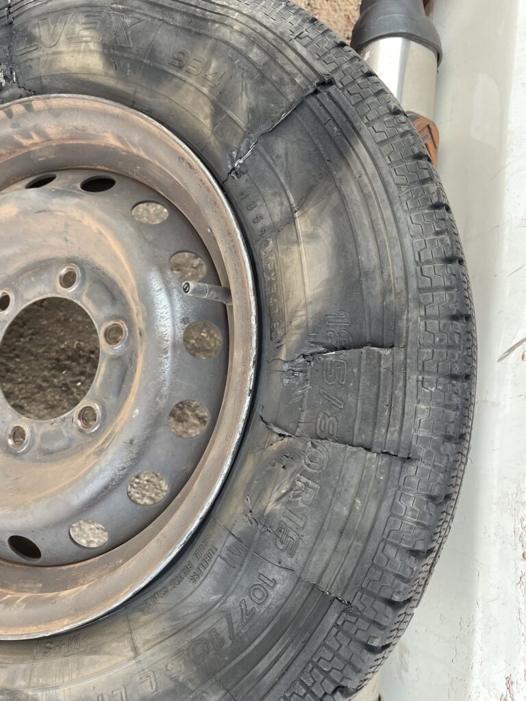 A 90 km/h su strada dritta, scoppia un pneumatico dal troppo caldo: proprio esplode!