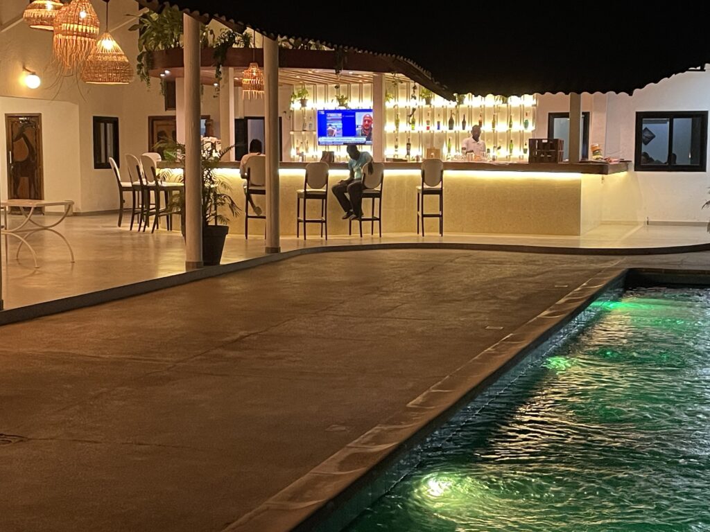 Finisco questa caldissima e lunga giornata al Relais de Kaolak, il più bello del giro, in piscina, con una birra e con un incazzatura con mia moglie via videotelefono perché non faccio i lavori da fare in giardino…🙄!