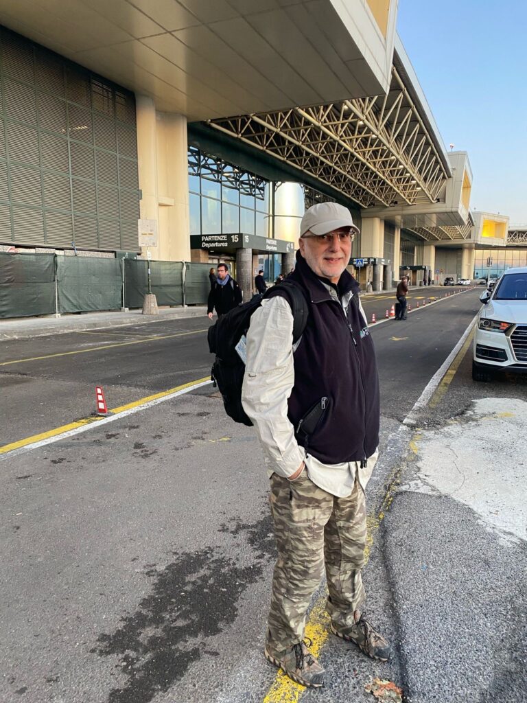 Per cui via all avventura! Che comincia subito con la scommessa di far stare tutto in un solo bagaglio a mano di max 7 kg, limite per questo biglietto…per cui dopo varie prove e rinunce mi ritrovo a 69,5 anni a partire solo con uno zainetto tattico nero da incursore delle forze speciali che, riempiendo le tasche della camicia con le cose più pesanti, riesce a pesare solo 7,8 kg, mio vero record personale: per la prima volta in vita mia parto per un viaggio intercontinentale da vero hippy Backpacker ( pensionato attempato, anzi calvo… ) , senza trolley, valige o borsoni vari con rotelline….