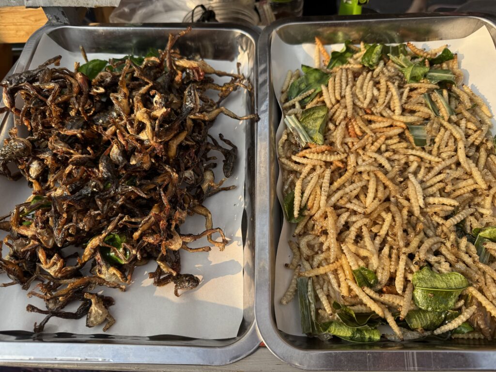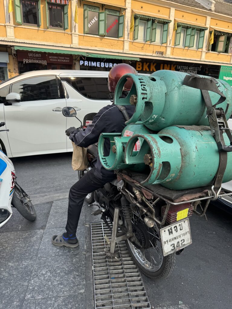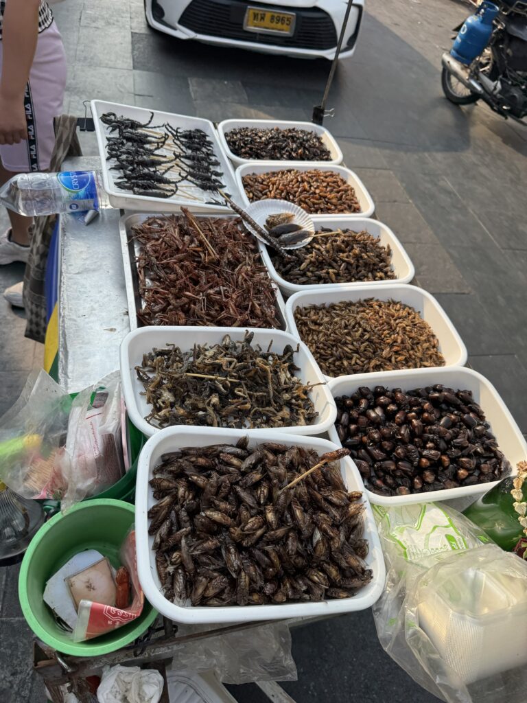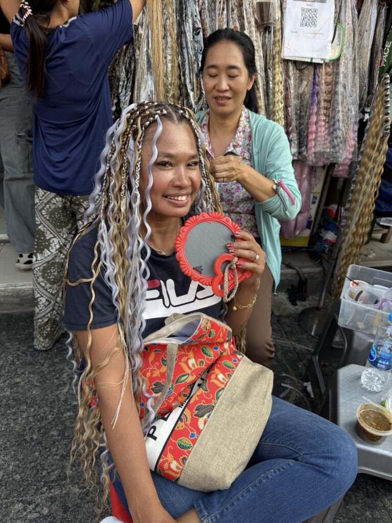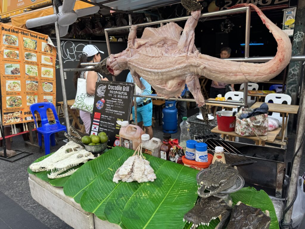 Quindi la giornata parte praticamente dalle 14,30…e mi devo ricredere. GoogleMap è fondamentale! Impossibile girarci senza oramai, trova percorsi, mezzi pubblici, orari, traffico e molto altro. Ci vorrebbe una cartina come lenzuolo ed un librone per avere le stesse informazioni…metro, piedi ,bus con rotta Khao San Road, la storica stradina di 300m nella Bkk vecchia degli hippy e backpackers anni 60, con negozietti bancherelle baretti alberghetti economici tatuaggi, massaggi. È chiamata Party Road ora, ed è una zona vivace, dove ci si può fare uno spiedino di alligatore, o bocconcini di insetti croccanti, o comperare le mutandine del vostro campione di Muay Thai (boxe) preferito, o farvi le treccine ecc. io mi faccio fare la cover per passaporto personalizzato Maucer🤪ovviamente.