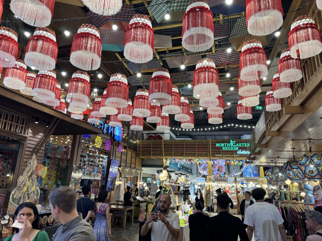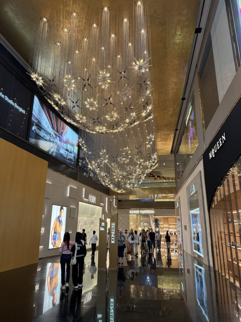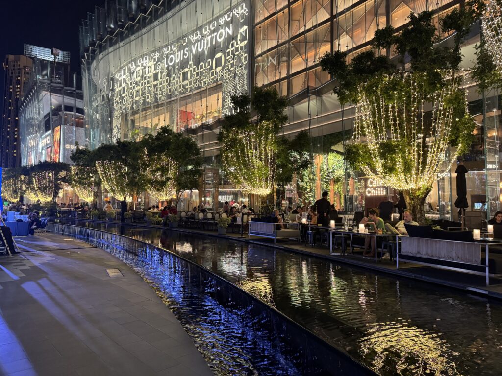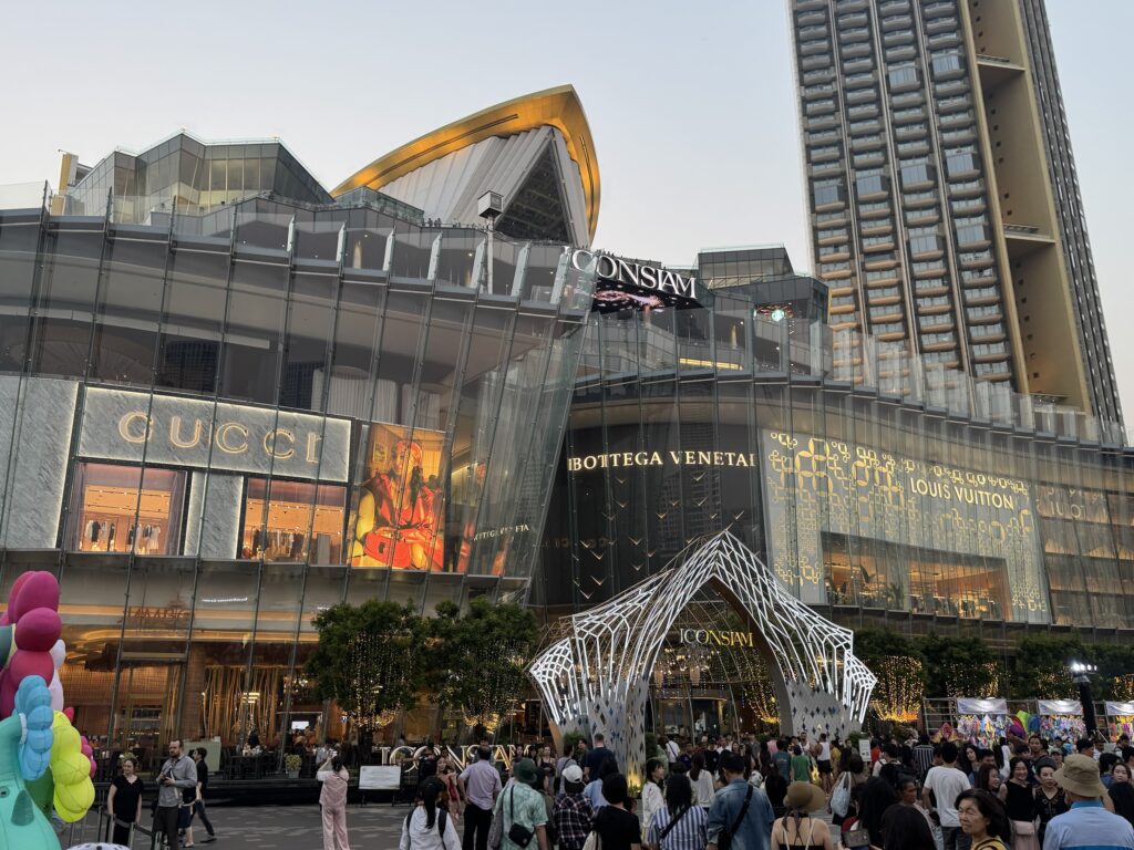 Sbarco al IconSiam, il nuovissimo, lussuosissimo ed incredibile centro commerciale da 1,5 miliardi di dollari!. Andate almeno sul web a guardarlo perché merita la visita, è pazzesco!!! I giochi d acqua con Bkk di sfondo sono spettacolari. Un tempio del fashion e del design mondiale, solo l insegna delle toilette è una chicca di design. Assaggio una crepe dolce tailandese premiata con stella Michelin da 1 euro🤪 Chiacchiero con una commessa italiana che vende stranissime borsettine di pelle italiane a forma di peperoncino di alto design e costo faraonico (Boyy) il negozio è stupendo con tema peperoncini rossi…