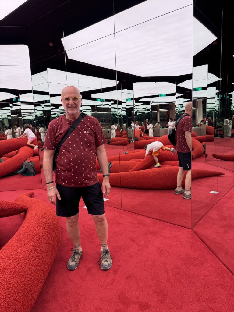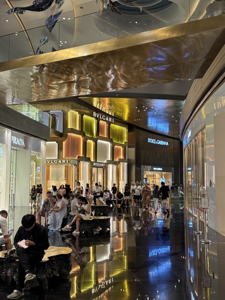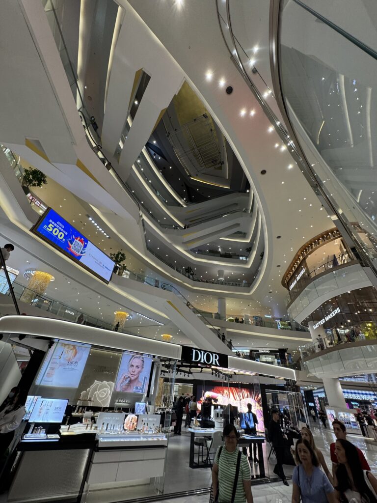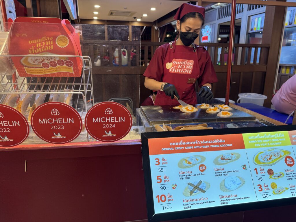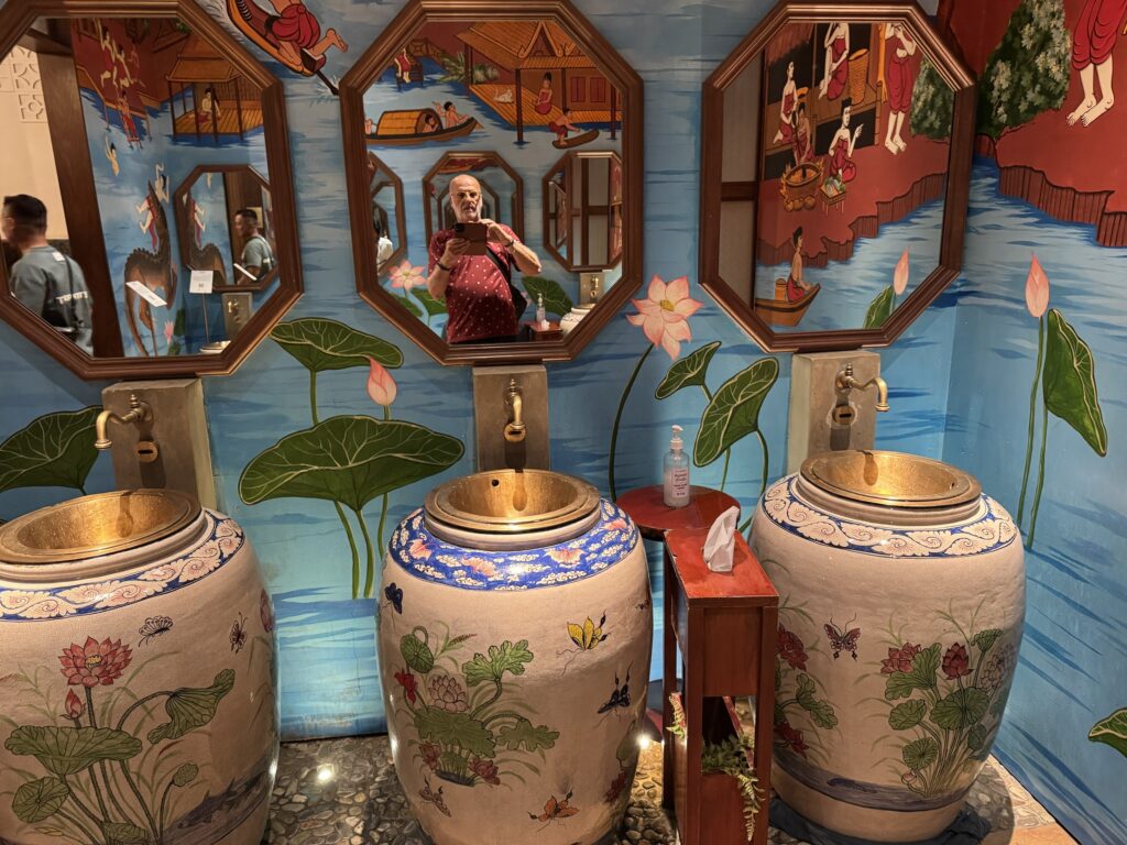 Sbarco al IconSiam, il nuovissimo, lussuosissimo ed incredibile centro commerciale da 1,5 miliardi di dollari!. Andate almeno sul web a guardarlo perché merita la visita, è pazzesco!!! I giochi d acqua con Bkk di sfondo sono spettacolari. Un tempio del fashion e del design mondiale, solo l insegna delle toilette è una chicca di design. Assaggio una crepe dolce tailandese premiata con stella Michelin da 1 euro🤪 Chiacchiero con una commessa italiana che vende stranissime borsettine di pelle italiane a forma di peperoncino di alto design e costo faraonico (Boyy) il negozio è stupendo con tema peperoncini rossi…
