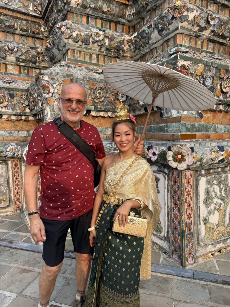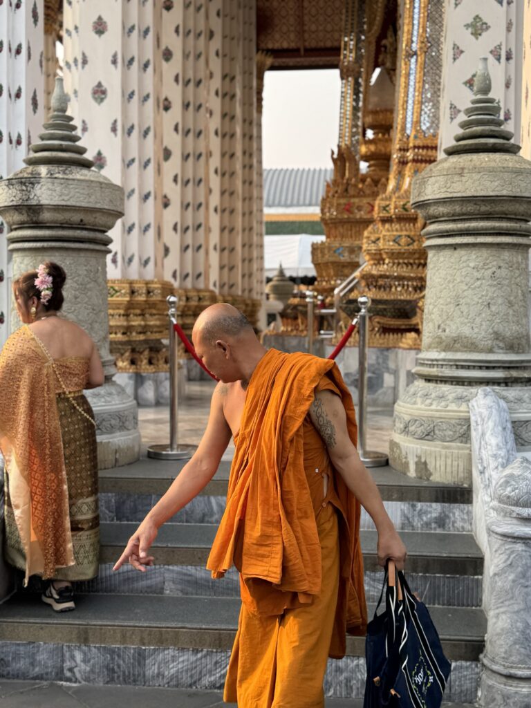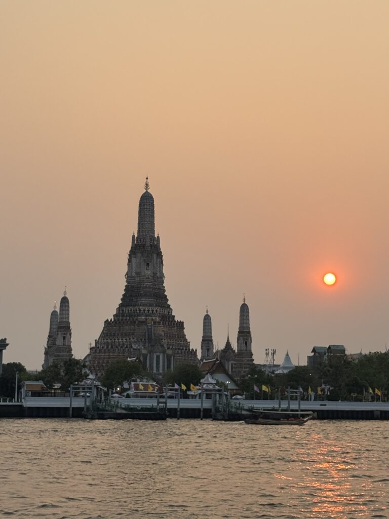 Con una motoretta, presa perché troppo stanco e per sfruttare eventualmente l assicurazione sanitaria fatta prima di partire (🤣), vado all imbarcadero del Wat Arun, che è opposto sul fiume al Wat Pho, visitare un tempio basta e avanza, gli altri sono bellissimi ma molto simili . E anche detto il tempio dell Alba, e quindi al tramonto ha il sole alle spalle. con 0,2 euro uso il traghetto per i monaci tutto per me…,e non vi dico come sono riuscito a non pagare l ingresso turistico, segreto!