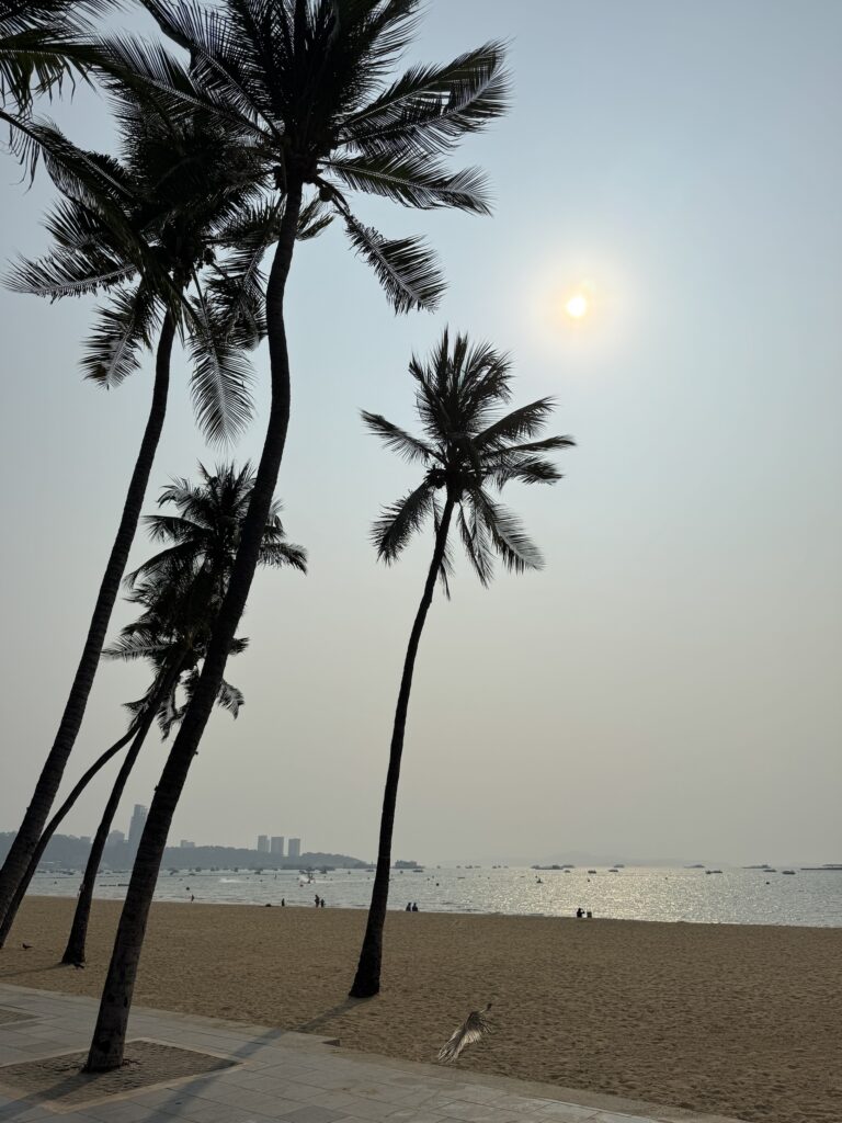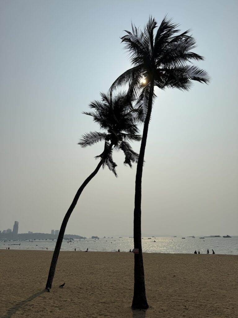 Inizio il mio viaggio verso sud e verso il mare andando a Pattaya, il porto e la spiaggia di Bangkok (tipo Ostia per Roma😜) . Con 5 euro e 2 ore circa di minivan, dalla Est BusStation di Ekkamai, ci arrivo facilmente, tutta autostrada a 12 (!) corsie, praticamente un continuum con Bkk, a32 gradi e cielo bianco latte, con sole. A Pattaya Non ci sono mai stato, ho una certa idea di come dovrebbe esser ma ovviante bisogna esserci per giudicare.