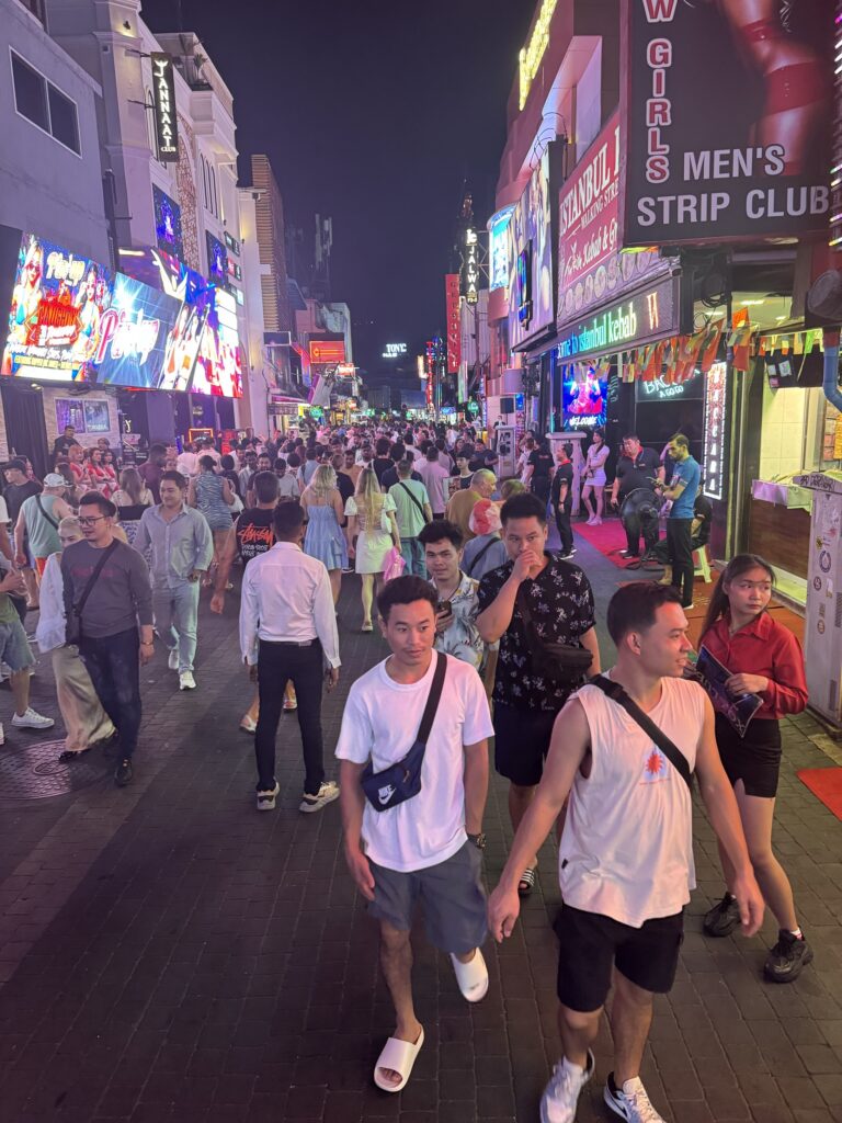 Anche se credo l alta stagione stia finendo, turisti ce ne sono, europei, coppie e famiglie ma la maggioranza sono uomini soli od in gruppetti, per lo più anziani. Molti indiani, giapponesi, cinesi , russi, coreani , americani, europei, alcuni gruppi in modalità Una Notte da Leoni, ne ho visto uno addirittura tatuato alla Tyson🤣, ricchi giovanotti coreani o giapponesi arrapati che sperperano centinaia di dollari per vedere le ragazzine insaponarsi languidamente in una jacuzzi in un go-go bar…