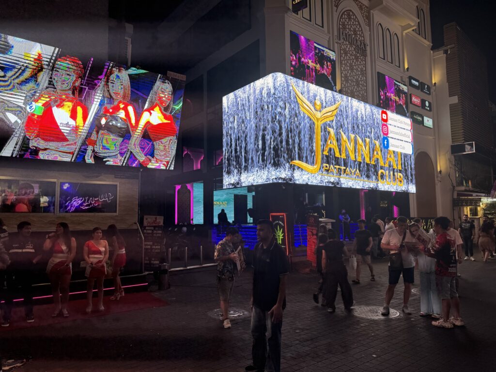 Pattaya rende il massimo alla sera o giusto prima del tramonto, si illumina e si rianima, per il resto della giornata è quasi vuota, molti locali chiusi e quasi tutti i turisti regolari od i vecchi puttanieri cronici sono alla pennichella pomeridiana prima della ennesima serata da leoni. L ultima chilometro della Beach Road è pedonale e si chiama Walking Road ed è il cuore pulsante della enorme Pattaya, una sfilza interminabile di gogo bar sfavillanti, alcuni specializzati in ragazze russe (!), altri in giovanissime ragazzine, ristoranti con aragoste esposte, discoteche incredibili con musica assordante e schermi luminosi fantascientifici , bar con musica dal vivo , zaffate di hascisc dappertutto ed una fiumana cosmopolita di gente.