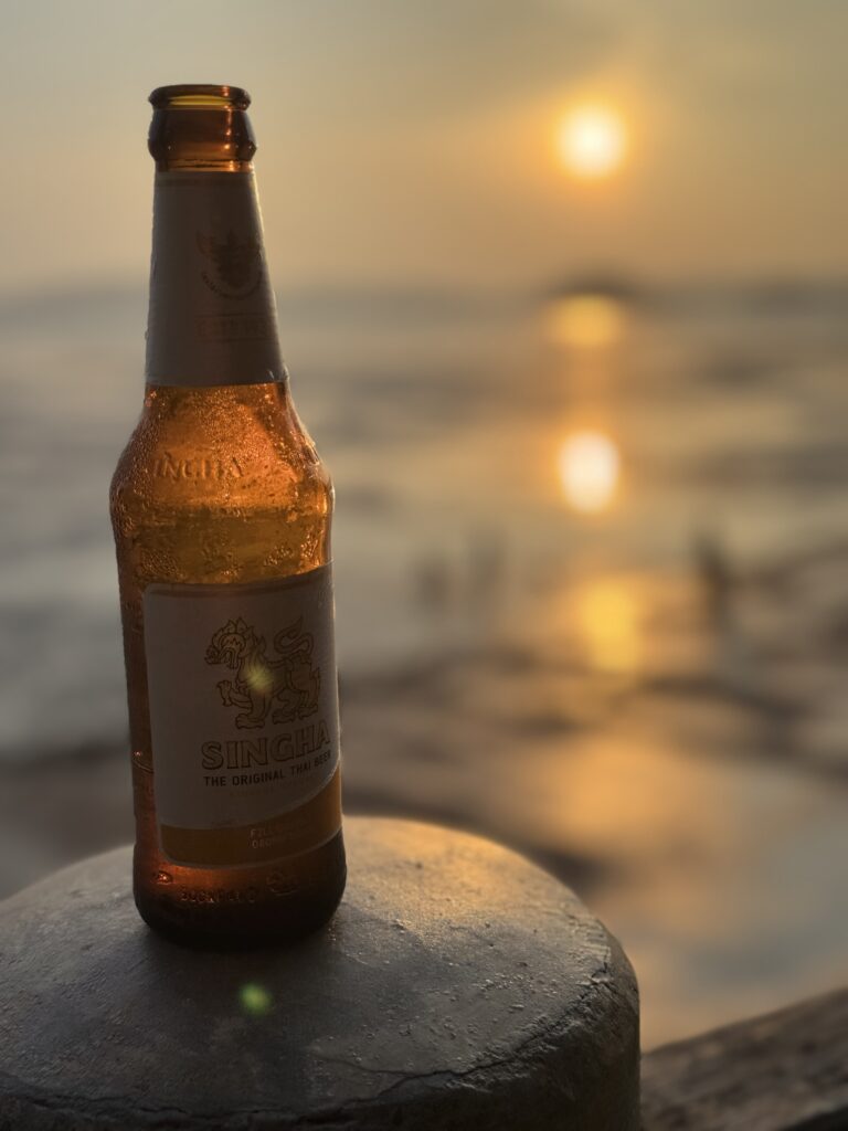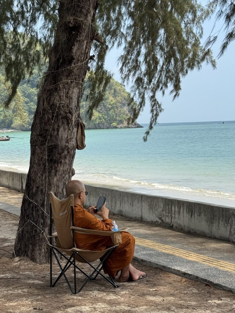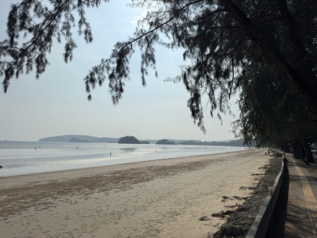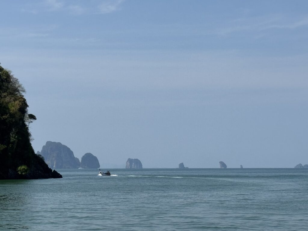 C’è la spiaggia, lunga ed ombreggiata , erosa dall alta marea e sull orizzonte si vede l arcipelago delle piccole PhiPhi , enormi rocce lussureggianti che escono dal mare delle Adamane. Splendide al tramonto. Questa è la zona da cui sono riprese le foto più spettacolari della Thailandia, le spiagge bianche, l isola di James Bond, le isole idilliache dove DiCaprio ha girato the Beach…