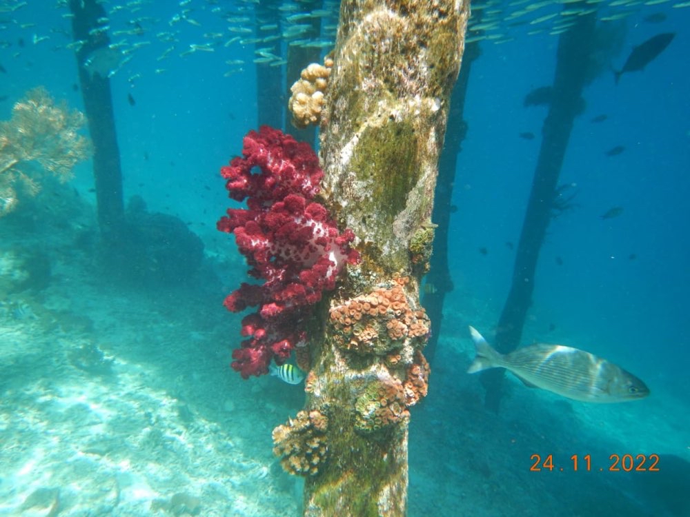 Vado a far snorkel vicino al jetty (il molo). Punto pieno di pesci colorati, grandi e piccoli, coralli, anemoni. I fondali attorno a questa isola sono stupendi. Ma la corrente di marea è fortissima, sembra un fiume, e senza pinne e impossibile contrastarla. Decisamente pericoloso! Sono solo, sto un attimo a trovarmi in mare aperto.