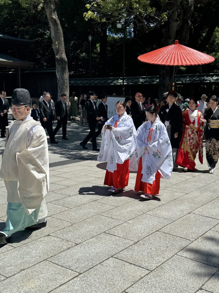 Poi il tempio ad Asakusa,con sosta e ottima birra all osservatorio della torre della società Ashai, la migliore birra giapponese , con vista di Tokyo dall alto. Arakirabari il quartiere dell elettronica, sexshops e maiden-Cafe dove ragazzine vestite come bamboline ti aiutano a bere facendoti infantili moine e cuoricini con le mani…Il tempio Meiji Jung ove domenica assistiamo ad una formalissima ed elegante cerimonia di matrimonio .