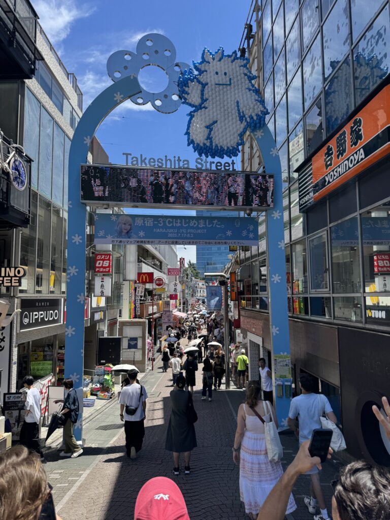 Poi anch’io essendo umano commetto sbagli e porto le mie 4 donne a Takeshita Dori , la affollatissima stradina di shopping di moda giovanile e stramba per le ragazzine cos-play che si vestono come Anime o bamboline sexy. E figuriamoci, ovviamente le perdo…, sparse per gli incredibili negozietti scatenate dallo shopping.