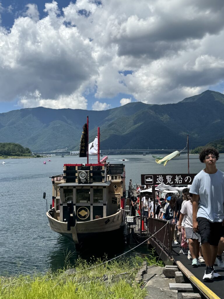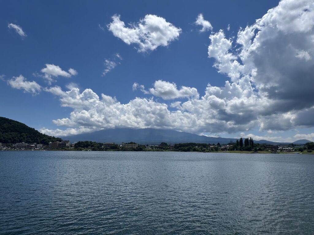 Con solo 2 cambi di treno e circa 2 ore arriviamo a Kawaguchiko , il lago tra le dolci montagne, su cui si riflette il più famoso vulcano, ripreso in tutte le foto turistiche .