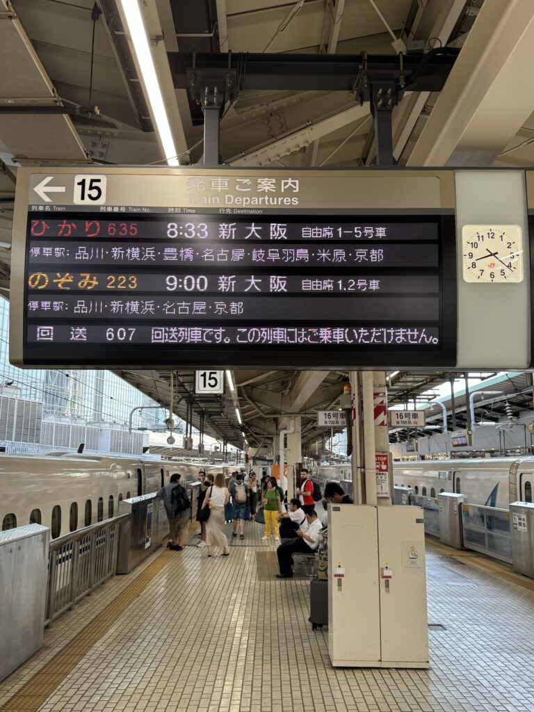 Con il puntualissimo Shinkanzen (treno veloce) delle 8.33 , il Hikari 635 (qui tutti i treni importanti hanno un nome) arriveremo a Nagoya, ove cambieremo per Takayama. L organizzazione delle stazioni, una volta capita, è razionale e perfetta , sui marciapiedi delle piattaforme di imbarco , su piastrelle ci sono i numeri delle carrozze ( per i diversi tipi di treni…) e la direzione della fila che le persone formano per imbarcarsi sul treno , le cui porte ovviamente si fermano al centimetro, allo scoccare del minuto previsto.