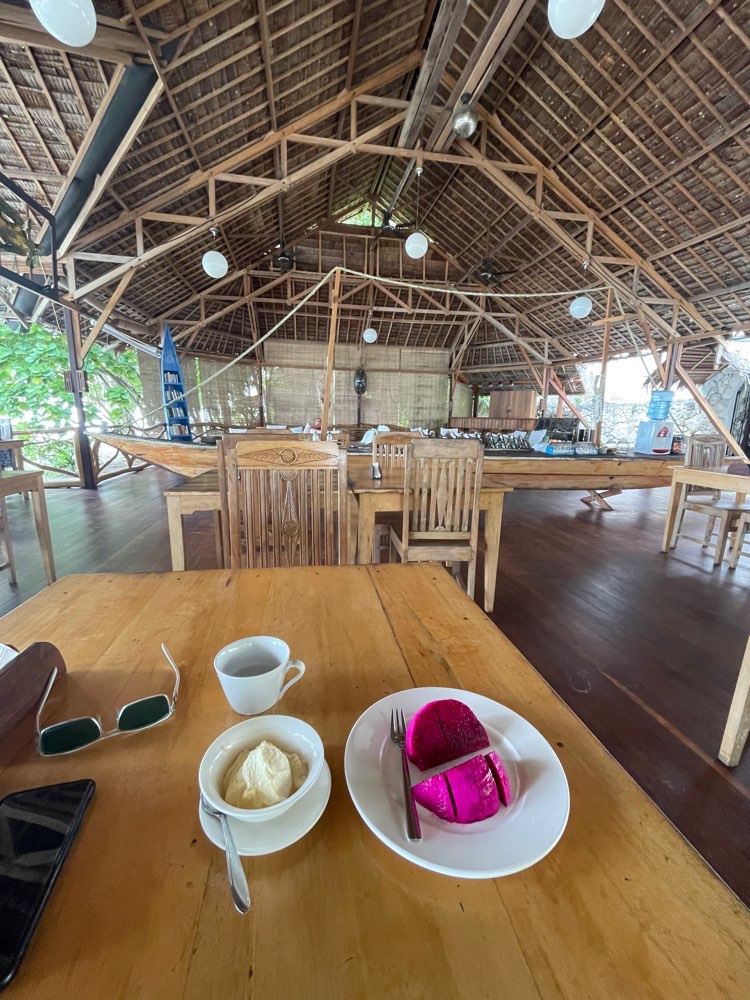 Io ho già pranzato ad Arborek ma davanti ad un piatto di frutta ed un gelato, beh…, non resisto.