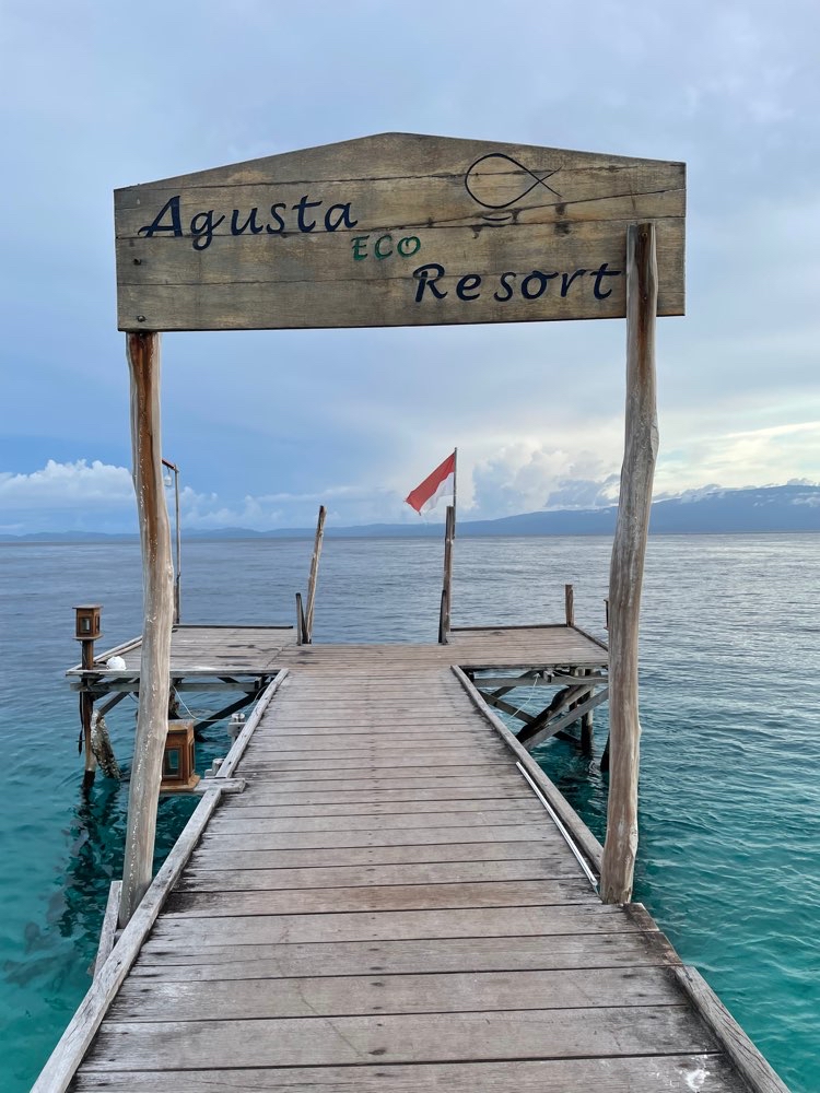 In 45 min di barca Roy mi porta da Arborek ad Agusta Island, schivando temporali, arriviamo al moletto, sbarco con il mio bagaglio(!) e riparte subito.