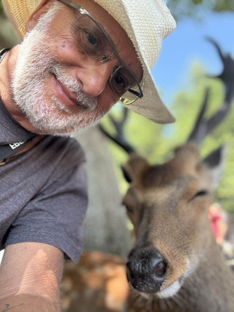 Scrivo questi appunti aspettando il ritorno del gruppo per prendere il traghetto all ombra sotto gli alberi con il mio amico cervo che mi tiene compagnia, e cerca di masticarmi il cappello particolarmente gustoso, di paglia e sudore…