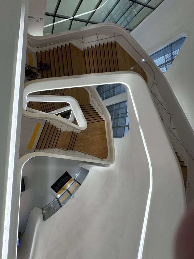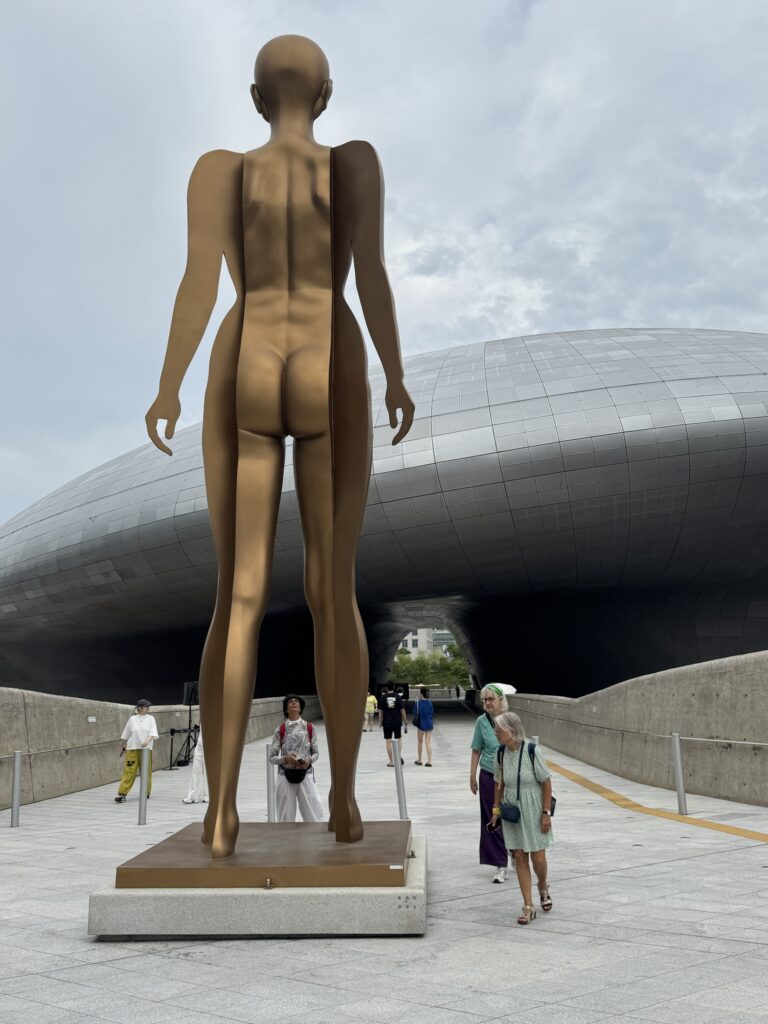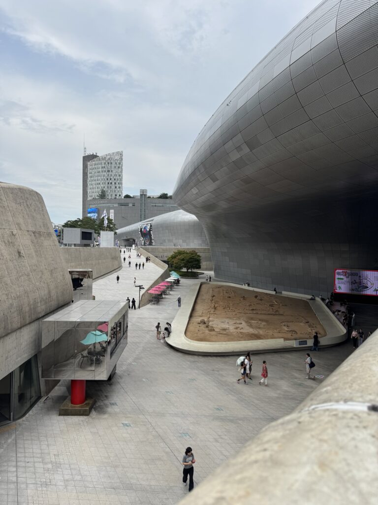 Arriviamo a DDP (Dongdaemun Design Plaza) famoso quartiere di shopping e caffè, caratterizzato da una enorme costruzione ovoidale , soprannominata la Balena, destinata ad hub culturale per mostre artistiche, musei ed altri avvenimenti.