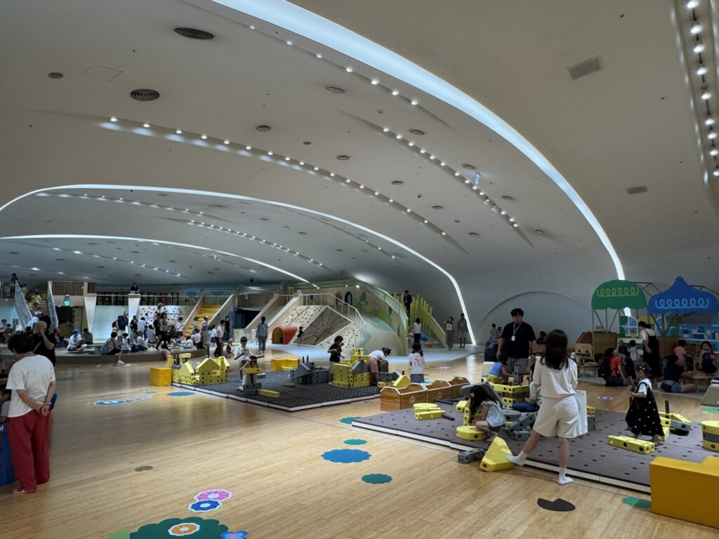 All’ interno vari spazi, cafe con belle terrazze, negozi minimalisti di design, tante aree gioco bambini, mostre varie tra cui quella di oggetti di modernariato , tipo telefoni anni 60, radio televisori, i primi computers ecc