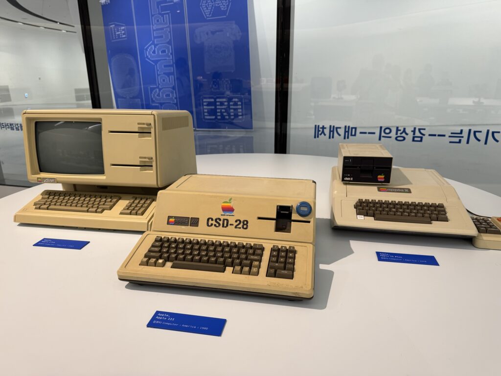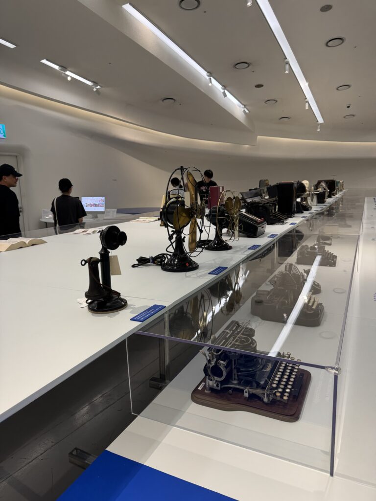 Purtroppo alcuni mi sono famigliari dalla mia infanzia e giovinezza, li ho usati(!) per i teenagers qui deve esser roba da dinosauri. C’è addirittura l ‘Olivetti 32 portatile, la macchina da scrivere su cui ho scritto la mia tesi di laurea, su cui un bambino coreano batte i tasti meravigliato dai meccanismi e dalla lettera battuta sul foglio…