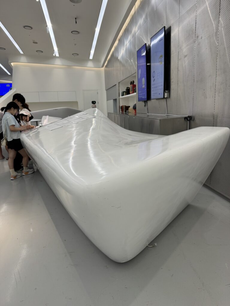 È disegnato dalla famosa architetta Zaha Hadid , archistar nota per le sue volumetrie curve e sinuose, molto eleganti . Ed è infatti bellissimo sia dentro che fuori. Progetto coraggioso e costosissimo. Andrebbe visto sapientemente illuminato la sera , circondato da moderni grattacieli e shopping-mall.