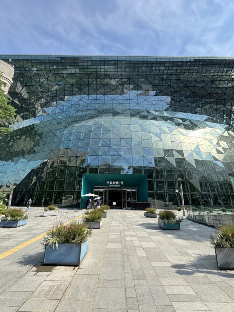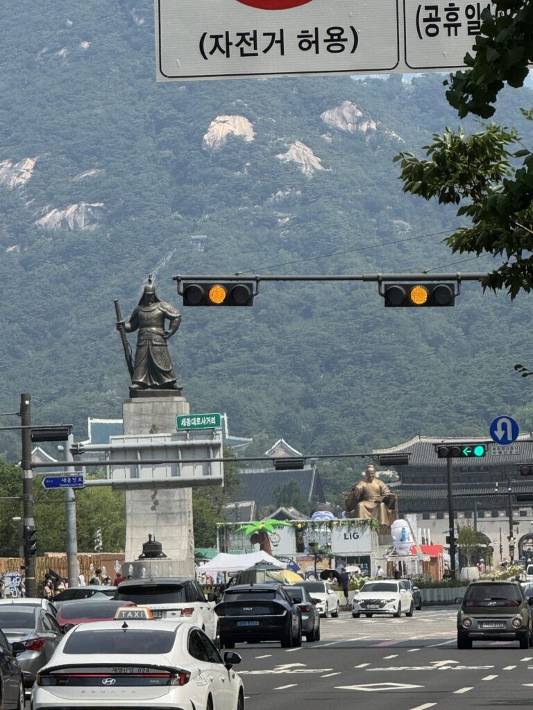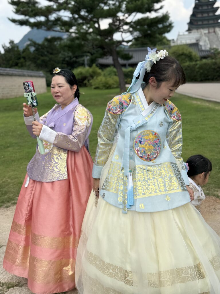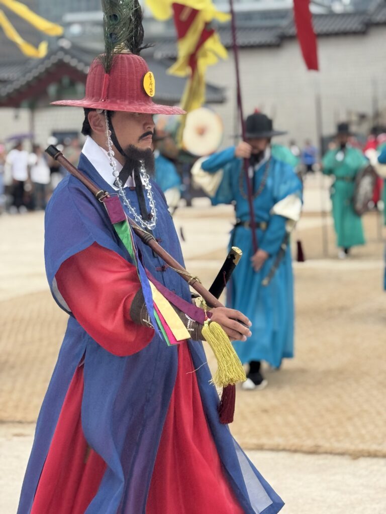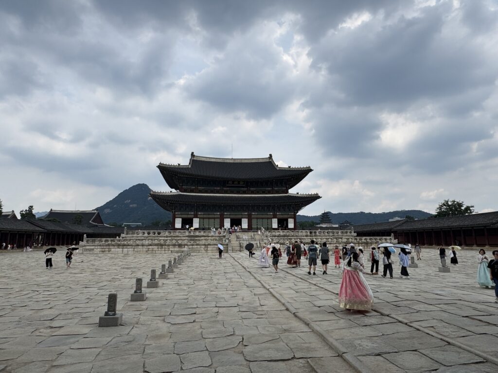 Con l’ennesima metro passiamo a vedere il Deokaungung, il palazzo reale , a fianco del municipio ( bel edificio in cristallo), il cambio della guardia alle 10 è saltato causa il troppo caldo (!) . Soddisfazione per l ingresso gratuito, almeno i 70anni servono a qualcosa…Scopro poi che il gruppo voleva vedere un altro palazzo ( ce ne sono 5 qui…) il Gyeonghuigung, quello più turistico e famoso. Con un bus quindi ci trasferiamo a nord. Google map non funziona benissimo, qui si deve usare NaverMap, ma avendo trovato una mappa su carta, con il mio vecchio mood analogico e non solo digitale, trovo meglio le direzioni e le rotte da fare.