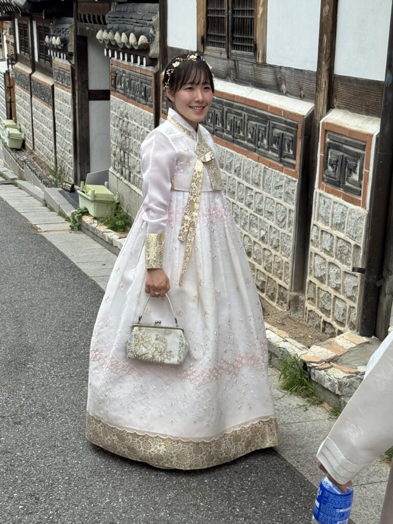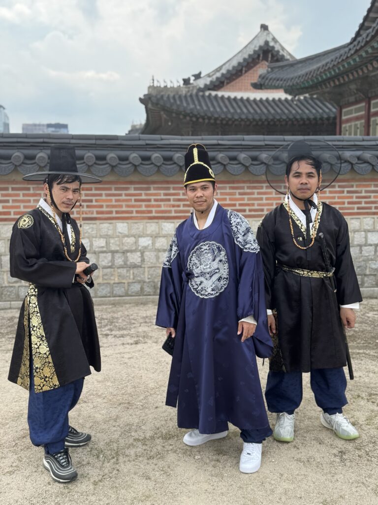 Prima di entrare nel palazzo giriamo il quartiere di Bukchon Hanok Village, con le tipiche case coreane( in salita..). Oltre a turisti, circolano molti coreani, alcuni con gli abiti tradizionali per farsi foto. E’ incredibile ma qui sembra che ci sia solamente gente giovane in giro.