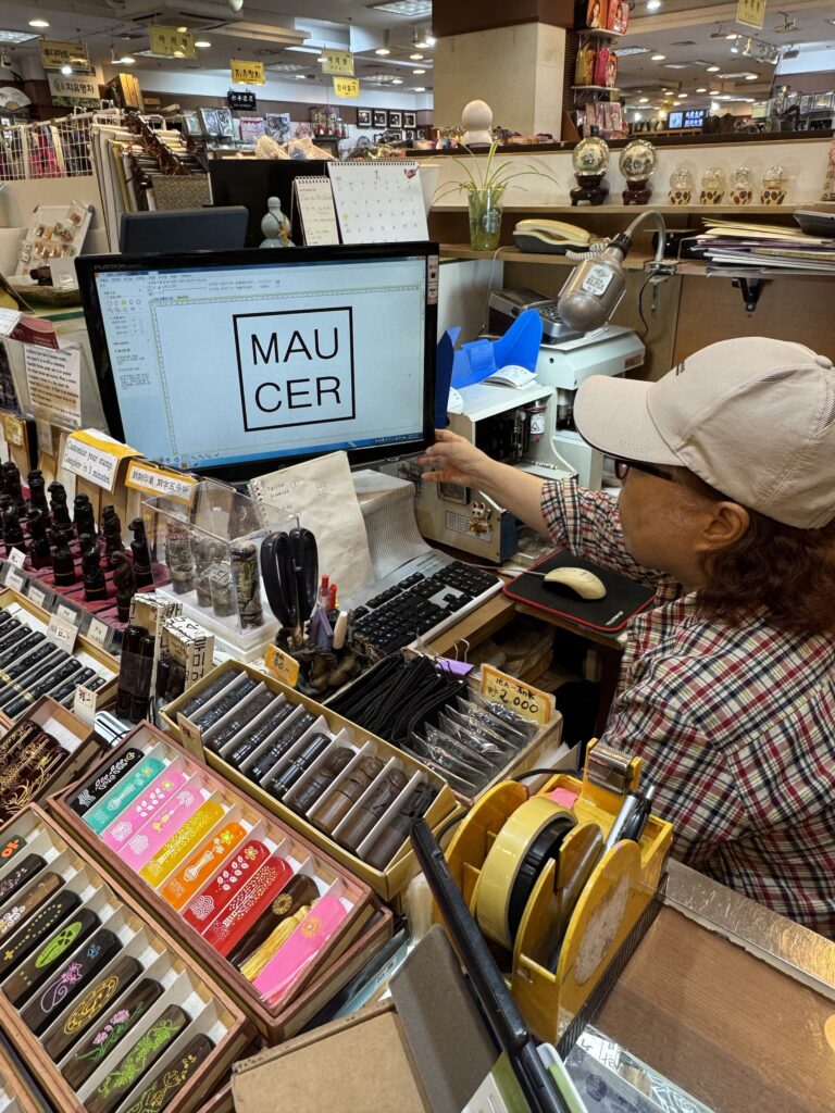 Poi inizio a girovagare, per vie che diventano sempre più interessanti con bei negozi. In uno trovo una pallina in bronzo che gira sui tre assi, In un altro mi faccio fare un timbro personalizzato su legno di bamboo; in Cina abili artigiani me li incidevano a mano, con il bulino, qui lo impostano al computer e lo fanno fresare da una macchinetta a controllo numerico stile stampante 3D.