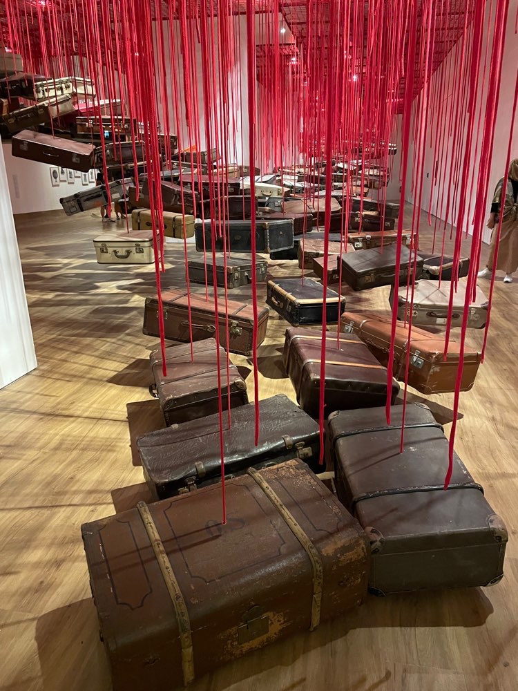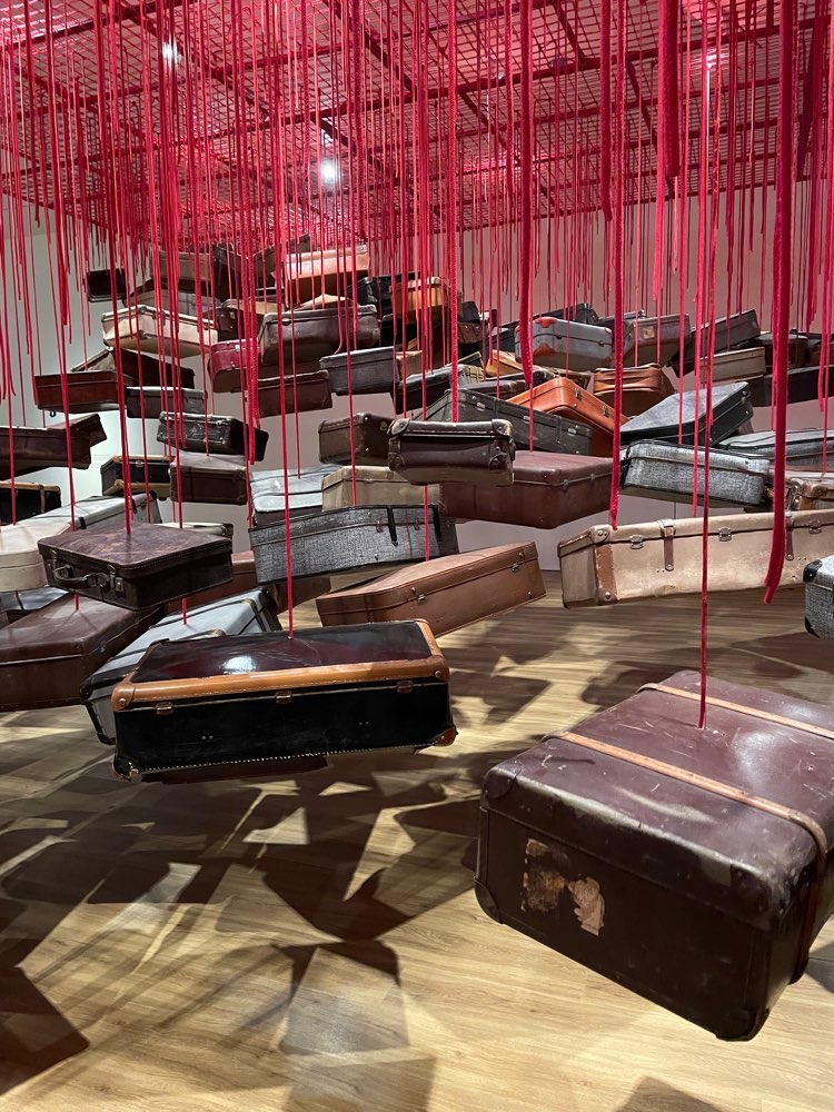 Poi in un altra enorme sala sono colpito da centinaia di vecchie valige fluttuanti nell aria, alcune che magicamente oscillano…(un richiamo al mio bagaglio perduto?) sistemate come un onda …