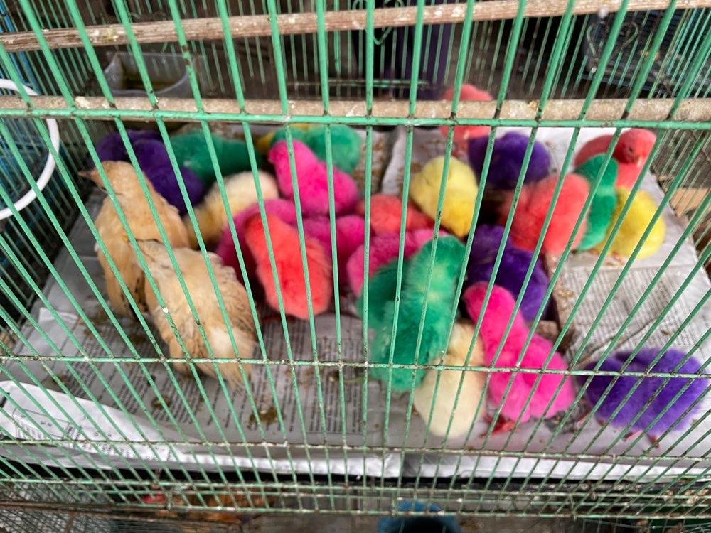 Ma sarà lo spirito oramai compromesso, un po’ la decadenza e sporcizia del posto, i poveri pulcini viola verdi e rossi in gabbia, ma L esperienza non è dissimile a quella mattutina.