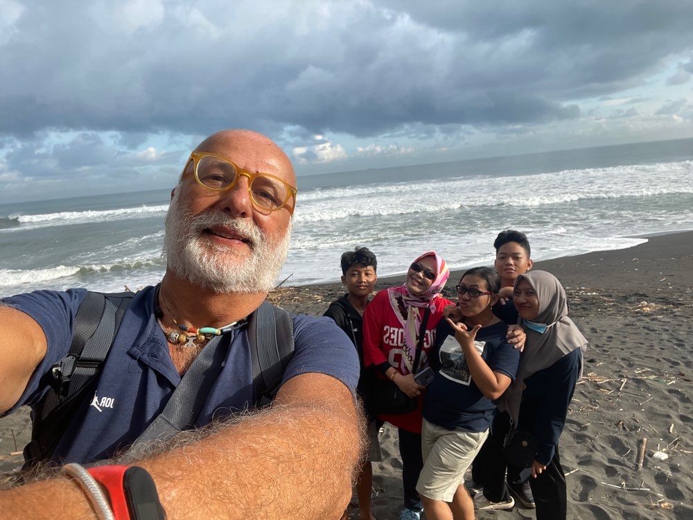 Salgo sul posto davanti a sinistra (qui guidano a dx) e tre donne mascherate e due ragazzi adolescenti mi accolgono a bordo di un auto giapponese eccitati e vocianti in un inglese stentoreo con musica indonesiana a tutto volume. La presenza di un ospite esotico impreziosisce la loro giornata di svago.