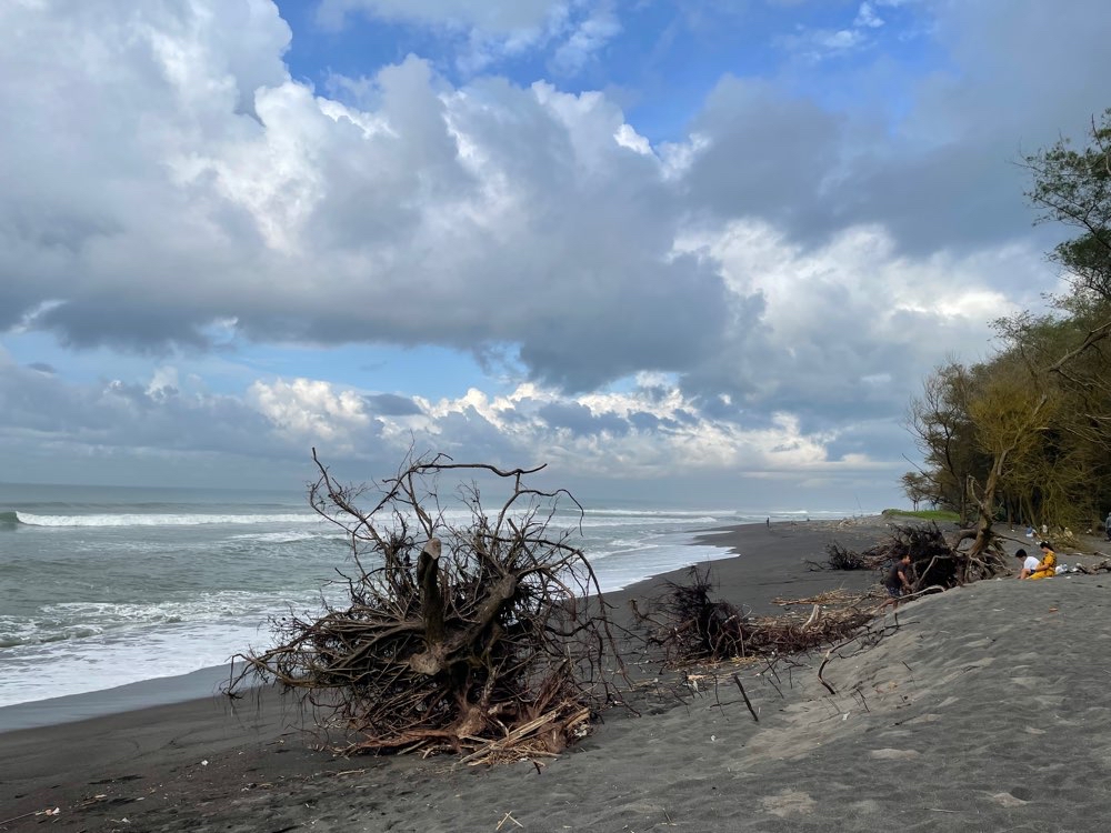 Avete presente il famoso “ mare d’inverno”? Beh, aggiungete che sono le 6.30 del mattino, fumi di falò di pattume bruciato, onde alte, spiaggia nera e decisamente sporca, misere strutture decadenti stile anni 60, poca gente in giro, tre mussulmane con figli appresso distese su una stuoia ad offrirmi frittelle di cipolla, riso e verdura e noci di cocco per colazione dopo una serie di selfie in tutte le posizioni possibili…ed una leggera pioggerellina che comincia a cadere…
