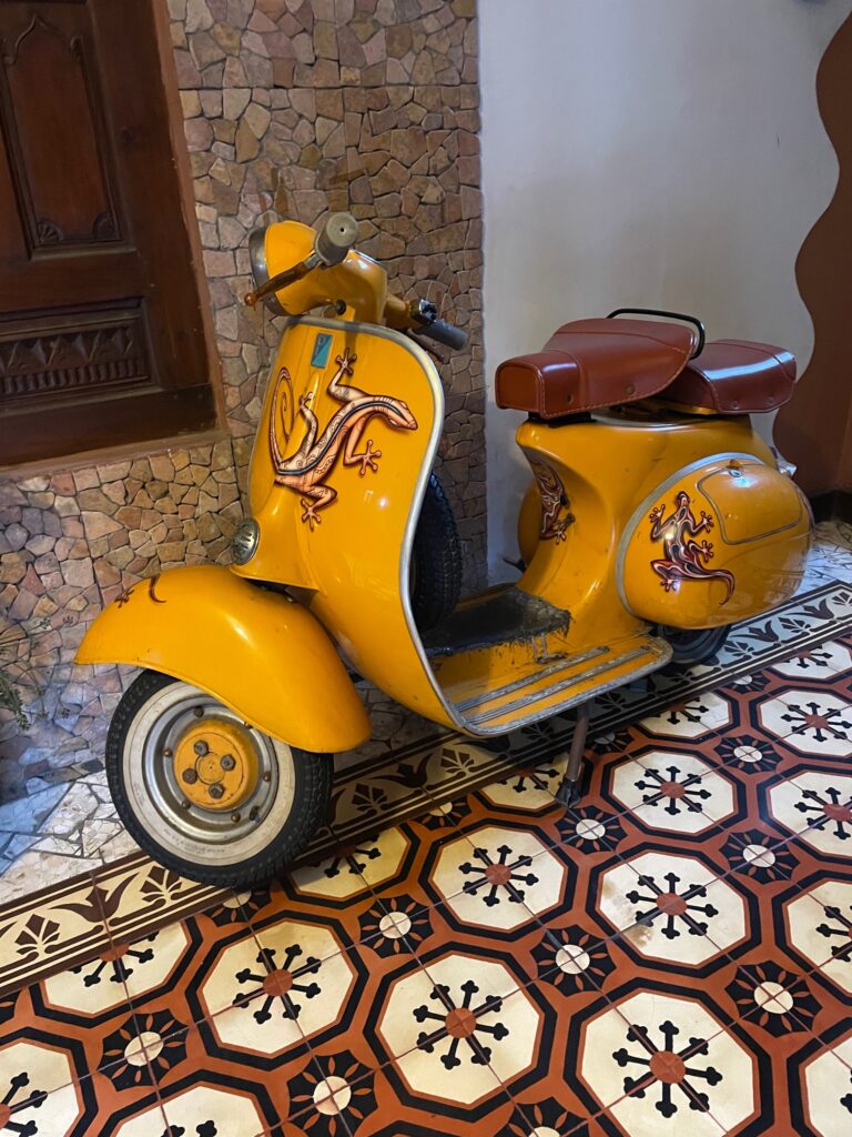 Un bel giardino, rivestimenti in legno, ed una simpatica vespa gialla con i geko dipinti nella reception,sono stati richiami troppo forti…