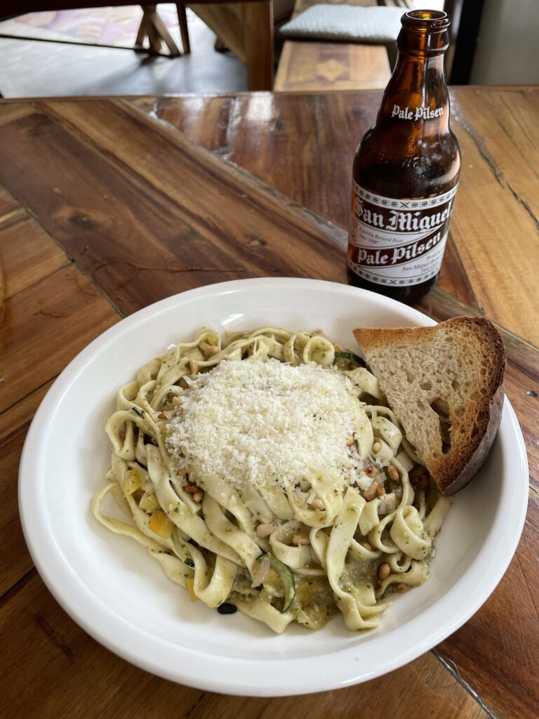 Purtroppo cedo al richiamo di una ottima pasta con il pesto in riva al mare, sono in piedi da stamane con un biscotto ed un bicchiere d acqua, e qui si trovano tutte le cucine del mondo, in un localino ho visto addirittura la Pasta Carsica (!), ma non ho osato🤣